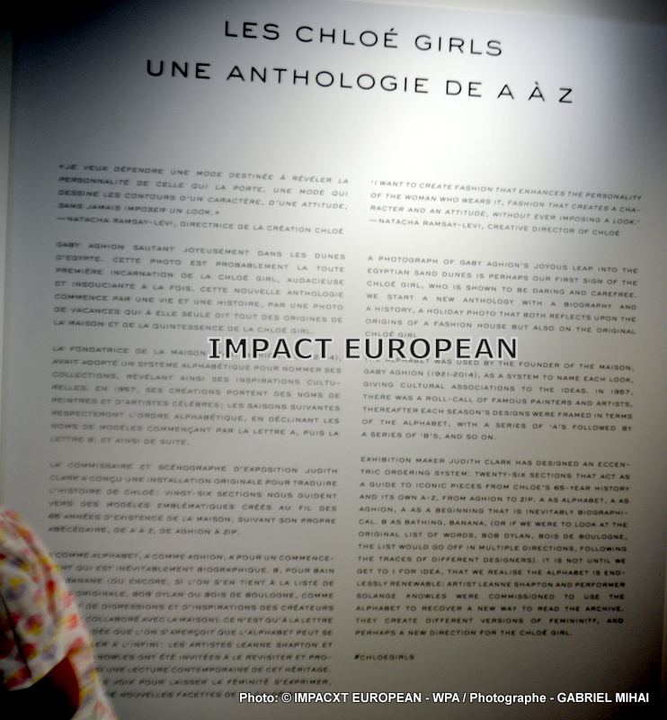 Chloé est une maison de couture française fondée en 1952 par Gabriela Aghion, une Parisienne d’origine égyptienne; elle a choisi de donner à sa maison le prénom d’une amie, Chloé Huisman, styliste aux Galeries Lafayette ensuite connue sous le nom de Chloé de Bruneton pour son côté chaud, féminin et en accord avec l’esprit jeune et audacieux.