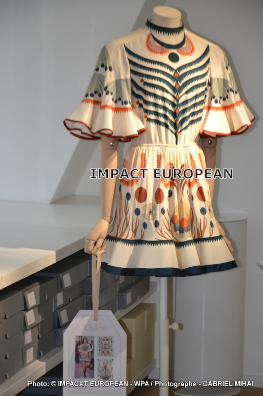 Le style Chloé se définit alors par une féminité tendre marquée par des robes au col cape dévoilant un dos nu, des dentelles incrustées et du crêpe de soie superposé.