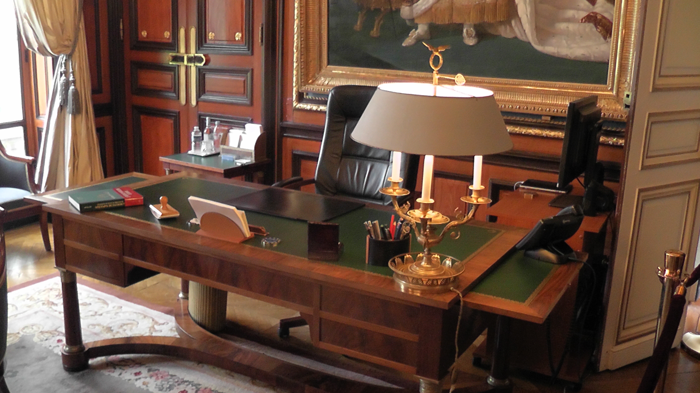 Le grand chancelier Jean – Louis Georgelin entreprend en 2011 la restauration des salons du palais, des façades et jardins, ainsi que la salle du conseil, par le biais de fonds provenent de mécénat privé.