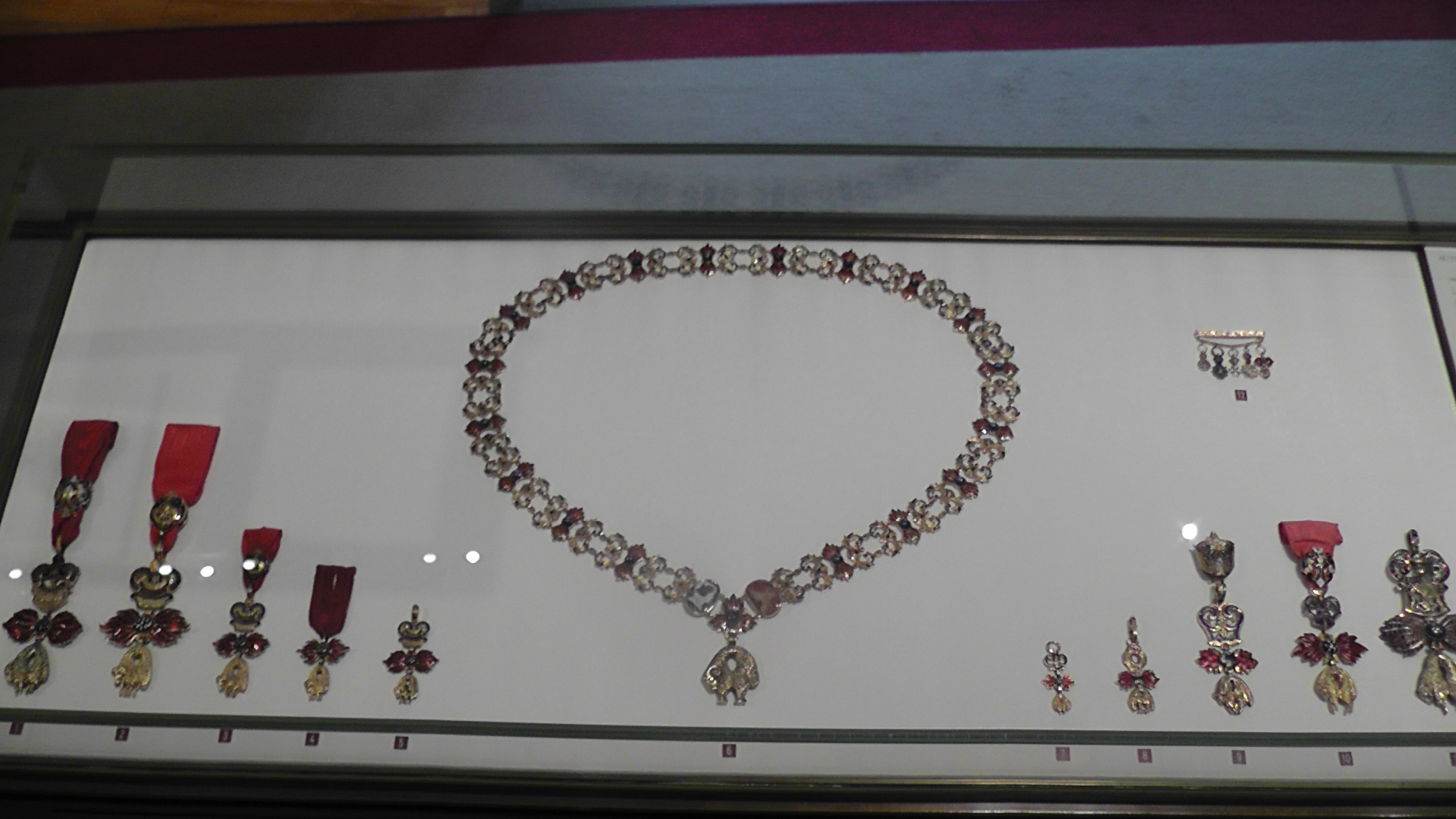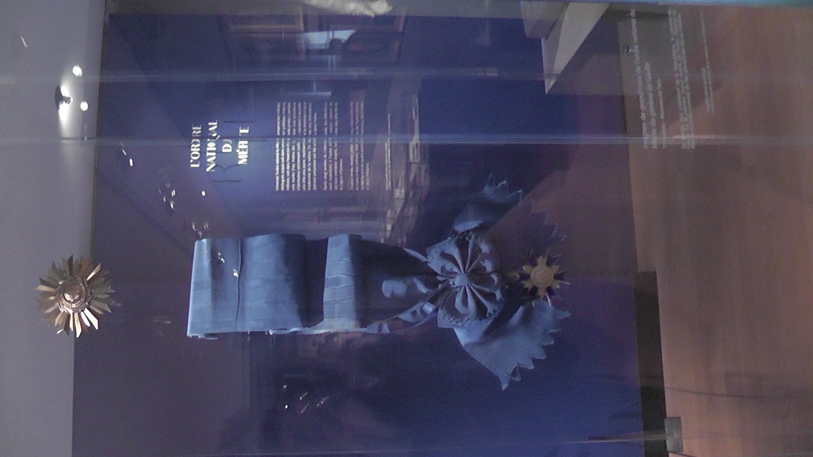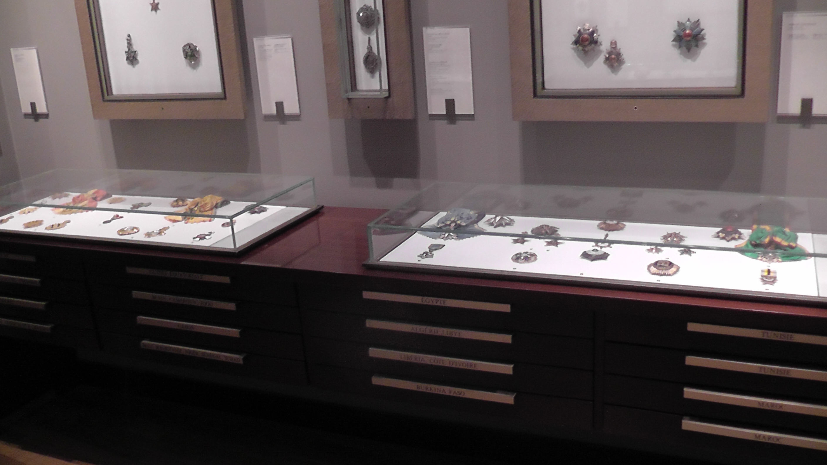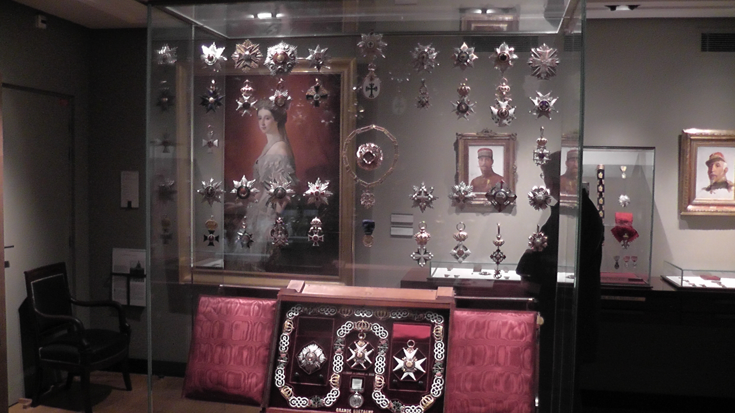 Le musée abrite les ordres chevaleresques religieux et militaires (ordre de Malte), les ordres Royaux, (St Michel, St Esprit, St Louis), la Légion d’honneur avec ses trois colliers dont les maillens illustrent les activités d’excellence de la nation. Créé sous le première empire porter par l’empere le collier fut recréé sur la 3éme Republique. Depuis il est l’incegne de président de la Republique qu’il est le seul a le recevoir. Au revers du chaque maillen sont gravés les nomms des présidents qui se sont succédé. Le collier actuel réalice en 1953 et présenter par le grand chancellier au président de la Republique.