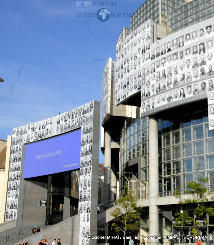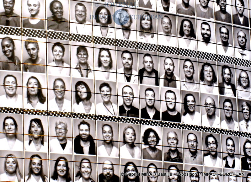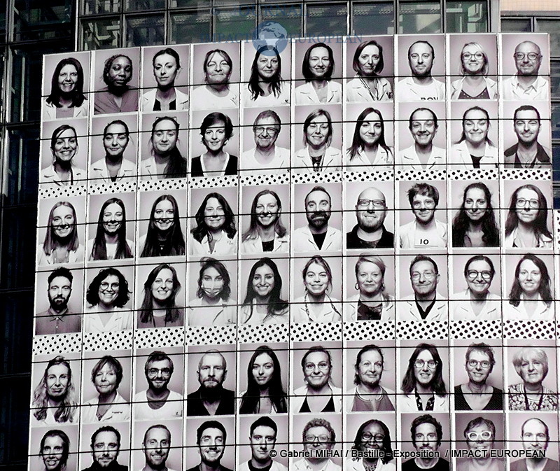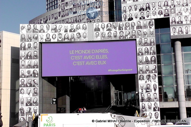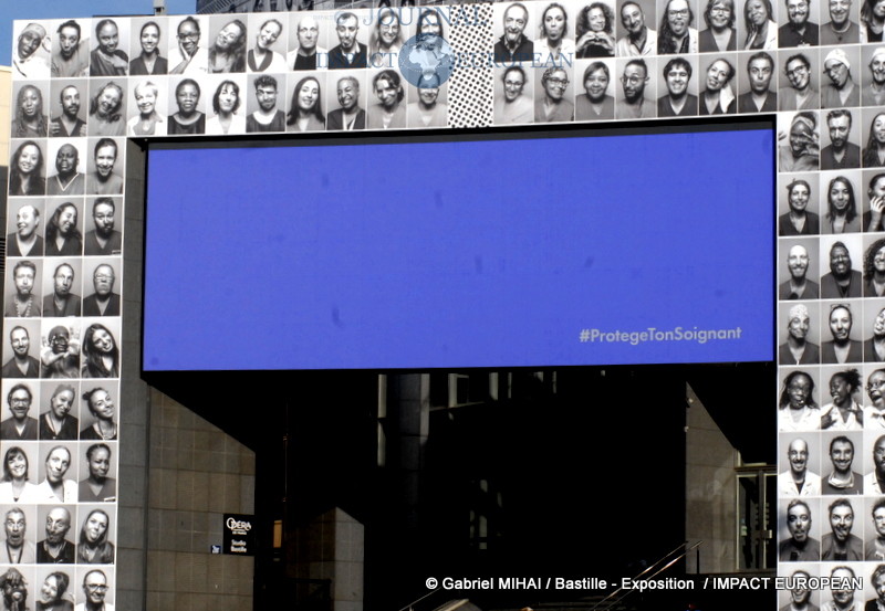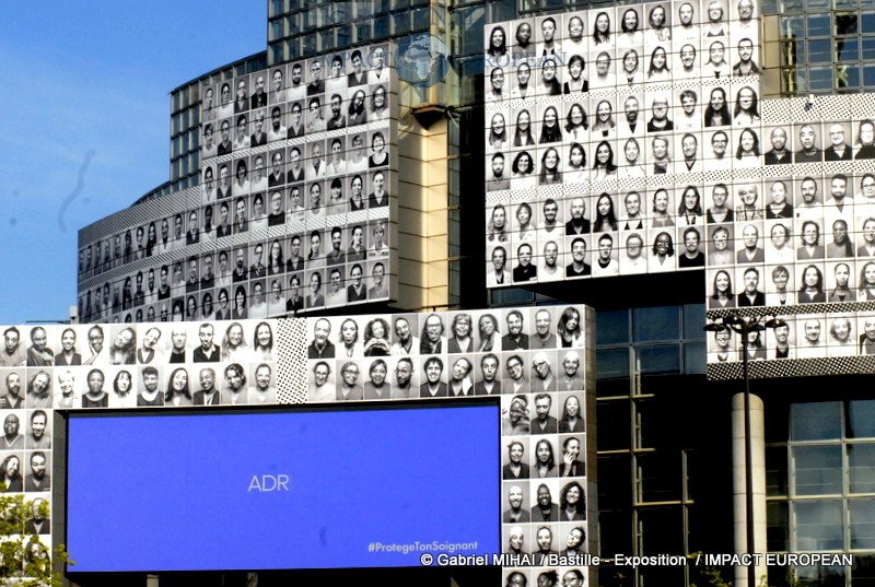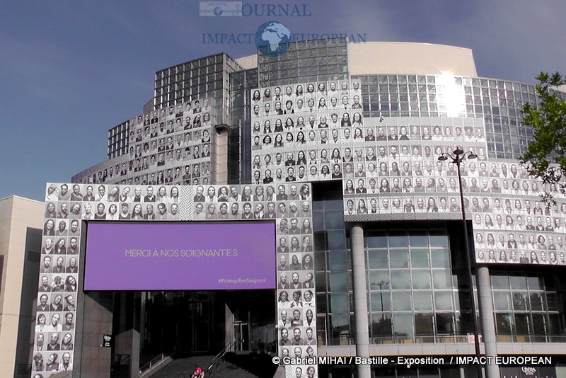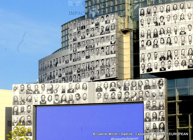 JR, l’artiste contemporain qui doit sa notoriété à la technique du collage photographique vous fait découvrir sa nouvelle oeuvre en plein centre de Paris, sur la façade de l‘Opéra Bastille où il a réuni 500 visages de soignants en collaboration avec le collectif « Protège ton soignant ».