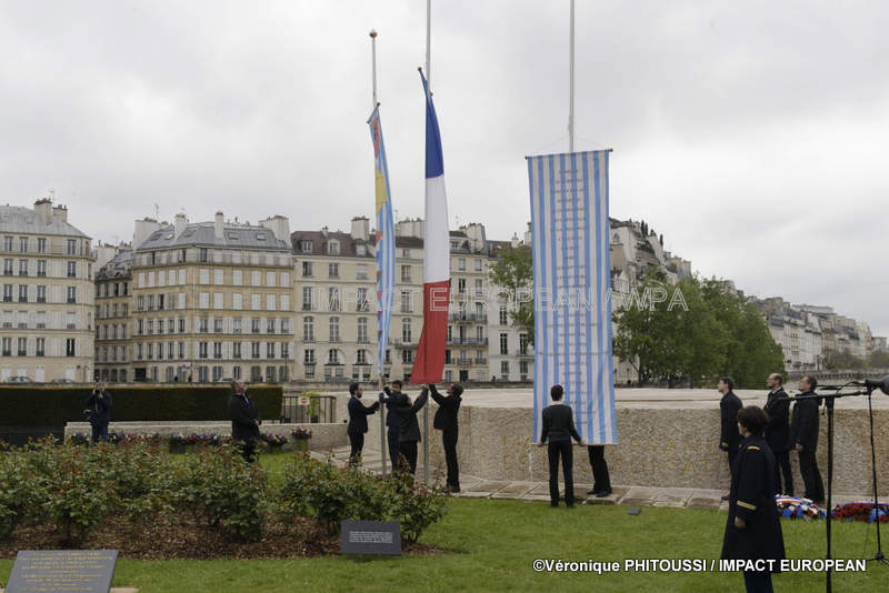 Une marche silencieuse des personnalités civiles, politiques, militaires, religieuses et d’associations d’anciens déportés est partie vers le Mémorial des Martyres de la Déportation, square de l’Ile France, quai de l’Archevêché où s’est tenue une seconde cérémonie suivie de la présentation d’un web-documentaire sur l’activité des élèves pour le projet.