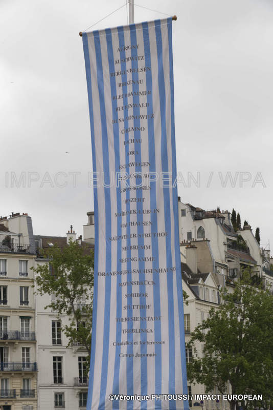 Arrivée d’Anne Hidalgo, Geneviève Darrieussecq et Ariel Weil à la 64 ième Journée nationale des victimes et heros de la déportation au Mémorial de la Shoah à Paris le 29 avril 2018, FranceMinute de silence d’Anne Hidalgo(g), Geneviève Darrieussecq, Jeanne d’Hauteserre et autres personnalités devant les gerbes déposées à la 64 ième Journée nationale des victimes et héros de la déportation au Mémorial de la Shoah à Paris le 29 avril 2018, FranceMinute de silence d’Anne Hidalgo(g), Geneviève Darrieussecq, Jeanne d’Hauteserre, Francis Kalifat, Pierre Aidenbaum et autres personnalités devant les gerbes déposées à la 64 ième Journée nationale des victimes et héros de la déportation au Mémorial de la Shoah à Paris le 29 avril 2018, FranceMinute de silence de personnalités devant les gerbes déposées à la 64 ième Journée nationale des victimes et héros de la déportation au Mémorial de la Shoah à Paris le 29 avril 2018, FranceDéplacement des autorités vers la Crypte du Mémorial sous la conduite de son directeur Jacques Fredj à la 64 ième Journée nationale des victimes et heros de la déportation au Mémorial de la Shoah à Paris le 29 avril 2018, FranceLa Crypte du Mémorial à la 64 ième Journée nationale des victimes et heros de la déportation au Mémorial de la Shoah à Paris le 29 avril 2018, FranceGerbes déposées par Anne Hidalgo, Genevieve Diarrieusseco et le Mémorial de la Shoah à la 64 ième Journée nationale des victimes et heros de la déportation au Mémorial de la Shoah à Paris le 29 avril 2018, FranceJacques Fredj, Directeur du Mémorial présente le Mur des noms à Anne Hidalgo, Geneviève Darrieussecq et autres personnalités à la 64 ième Journée nationale des victimes et heros de la déportation au Mémorial de la Shoah à Paris le 29 avril 2018, FranceMarche silencieuse d’Anne Hidalgo, maire de Paris, Genevieve Darrieussecq, secrétaire d’état auprès de la Ministre des Armées, Francis Kalifat, président du CRIF et autres personnalités, et 2 tambours de la Gendarmerie mobile et Garde républicaine vers le Mémorial des Martyrs de la Déportation le 29 avril 2018Marche silencieuse d’Anne Hidalgo, maire de Paris, Genevieve Darrieussecq, secrétaire d’état auprès de la Ministre des Armées, Francis Kalifat, président du CRIF et autres personnalités vers le Mémorial des Martyrs de la Déportation le 29 avril 2018Bannières des camps hissées au Mémorial de la Déportation à la 64 ième Journée nationale des victimes et héros de la déportation à Paris le 29 avril 2018, FranceBannières des camps hissées au Mémorial de la Déportation à la 64 ième Journée nationale des victimes et héros de la déportation à Paris le 29 avril 2018, FranceAllumage de la vasque par la SEMARMLecture d’un poème par une ancienne déportéeAnncienne déportée au Memorial de la Déportation après lecture du PoèmeSonnerie aux Morts et minute de silence et Interprétation de la Marseillaise par le CafBannières des camps hissées au Mémorial de la Déportation à la 64 ième Journée nationale des victimes et héros de la déportation à Paris le 29 avril 2018, FranceDépôt de gerbe par les anciens déportés au Mémorial des Martyrs de la Déportation, le 29 avril 2018Dépôt de gerbe par Geneviève Darrieussecq, sécrétaire d’état auprès de la ministre des armées et les militaires au Mémorial des Martyrs de la Déportation, le 29 avril 2018Anne Hidalgo, maire de Paris(c), Geneviève Darrieussecq, sécrétaire d’état auprès de la ministre des armées, des élus, Francis Kalifat, president du CRIF, Ariel Weil, Jeanne d’Hauteserre, M Aidenbaum et des personnalités civiles, militaires et anciens déportés et associations pour la minute de silence au Mémorial des Martyrs de la Déportation, le 29 avril 2018Interprétation de la Marseillaise par Anne Hidalgo, maire de Paris, Geneviève Darrieussecq, sécrétaire d’état auprès de la ministre des armées, Jeanne d’Hauteserre, Ariel Weil, d’élus et le Caf au Mémorial des Martyrs de la Déportation, le 29 avril 2018Salut de Geneviève Darrieussecq, sécrétaire d’état auprès de la ministre des armées avec Beate Klarsfeld au Mémorial des Martyrs de la Déportation, le 29 avril 2018Echange entre Elus et membres d’associations d’anciens déportés au Mémorial des Martyrs de la Déportation, le 29 avril 2018Echange entre Beate Klarsfeld et un Commandant de l’Armée Française au Mémorial des Martyrs de la Déportation, le 29 avril 2018Echange entre Geneviève Darrieussecq, sécrétaire d’état auprès de la ministre des armées et un ancien déporté au Mémorial des Martyrs de la Déportation, le 29 avril 2018Un membre du Crif, Anne Hidalgo, maire de Paris, un ancien déporté (c), Geneviève Darrieussecq, sécrétaire d’état auprès de la Ministre des Armées et autres personnalités au Mémorial de la Déportation à la 64 ième Journée nationale des victimes et héros de la déportation à Paris le 29 avril 2018, FranceUn membre du Crif, Francis Kalifat (c), president du CRIF, une autre personnalité au Mémorial de la Déportation à la 64 ième Journée nationale des victimes et héros de la déportation à Paris le 29 avril 2018, FranceJeanne d’Hauteserre, maire du 8ième arrondissement au Mémorial des Martyrs et de la Déportation, le 29 avril 2018, à paris, France