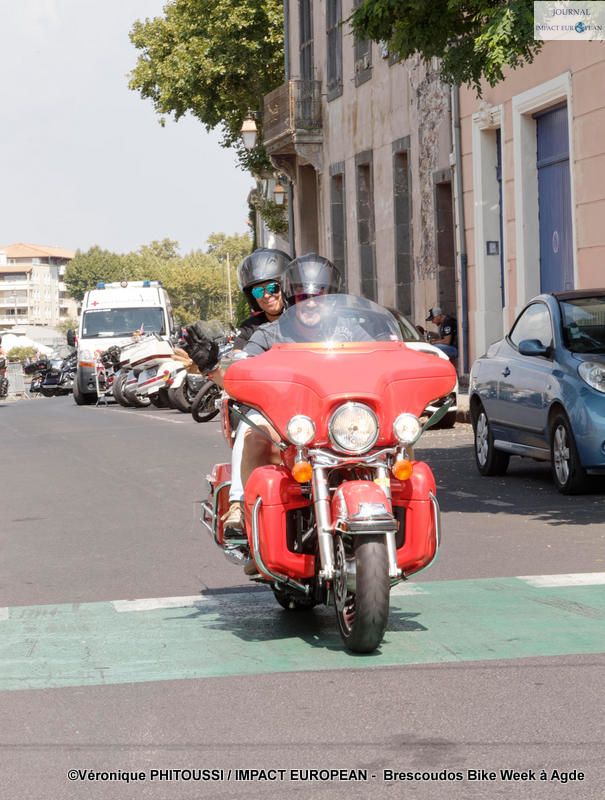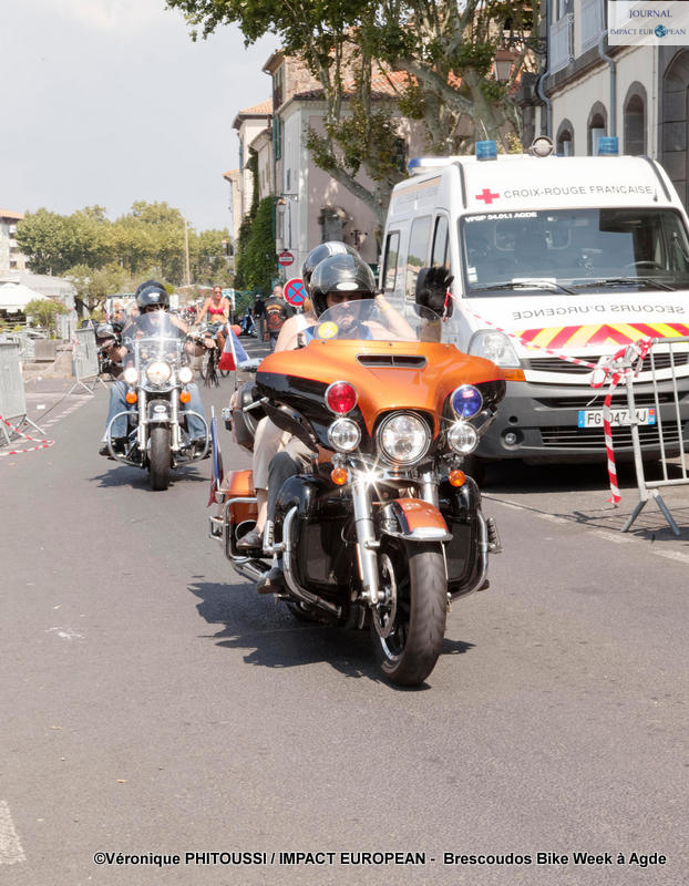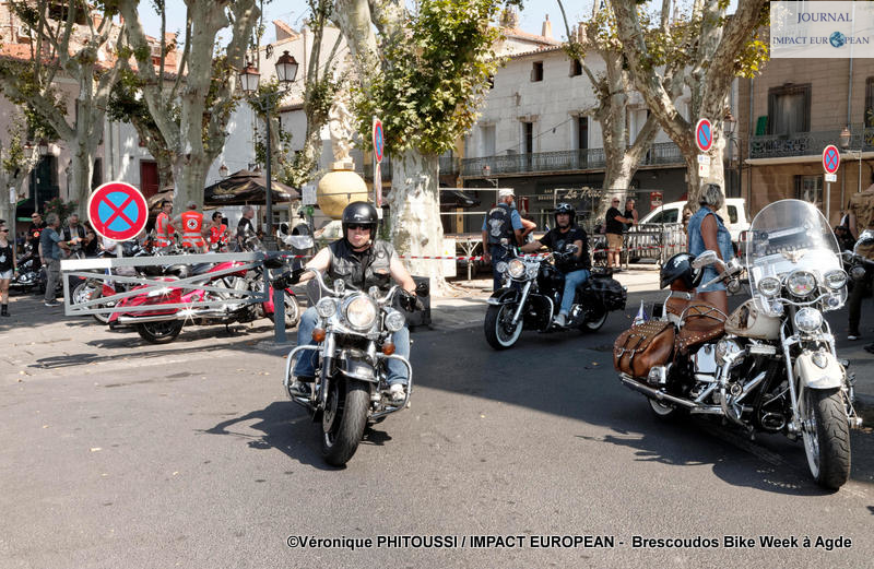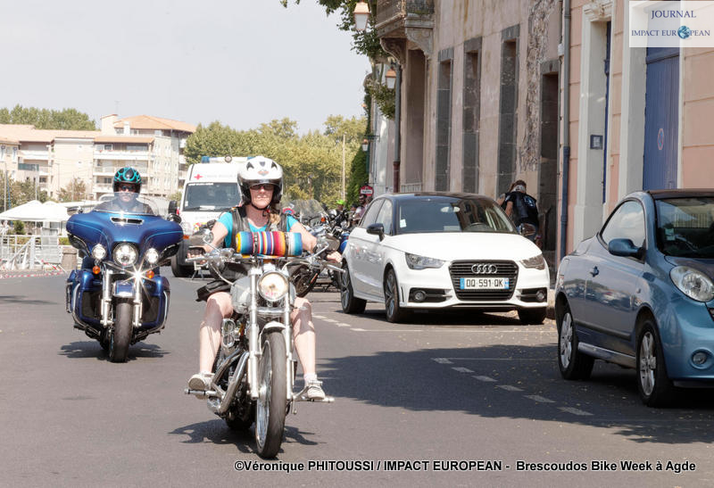 La Brescoudos Bike Week défile en un long cortège dans chaque ville traversée, les passionnés et les touristes peuvent à cette occasion découvrir de nombreuses Harley Davidson et GoldWing, des Custom et aussi des Trike.