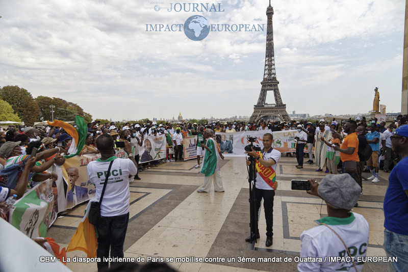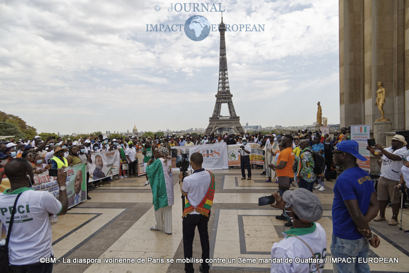A Paris, la diaspora ivoirienne toutes tendances confondues s’est réunie les samedis 8 et 15 août sur le Parvis des Droits de l’Homme, place du Trocadéro pour exiger le respect de la Constitution et dire non à un 3ème mandat anticonstitutionnel du Président.