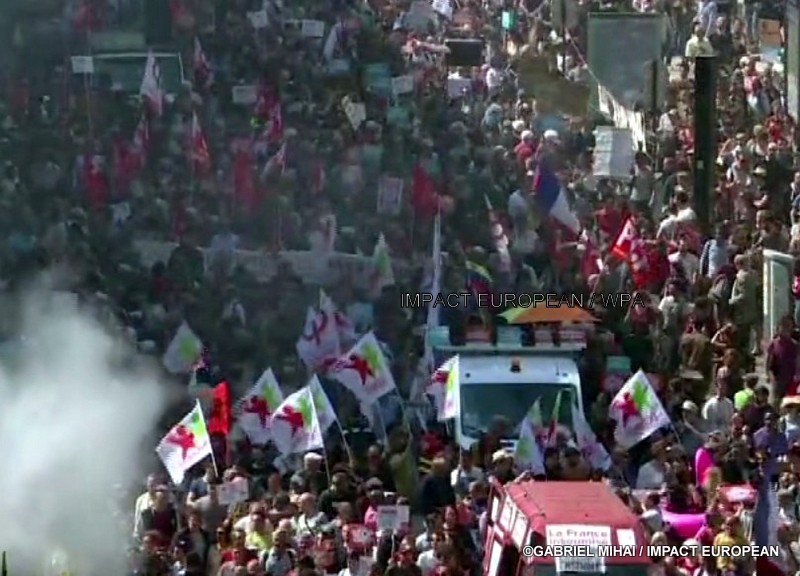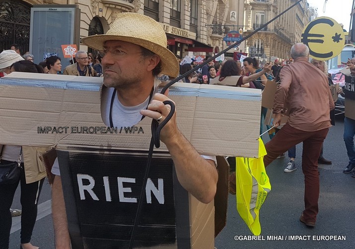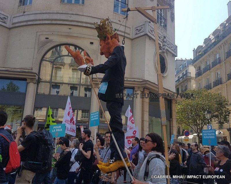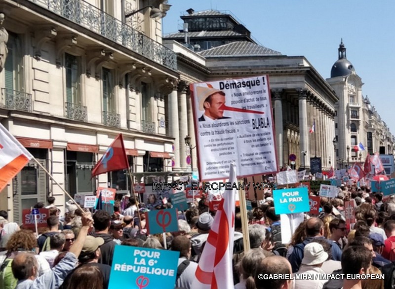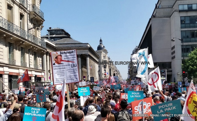 Des dizaines de milliers de personnes ont défilé sous un soleil éclatant et dans une ambiance bon-enfant samedi à Paris pour faire «la fête à Macron» et dénoncer les différentes réformes engagées par le président français.