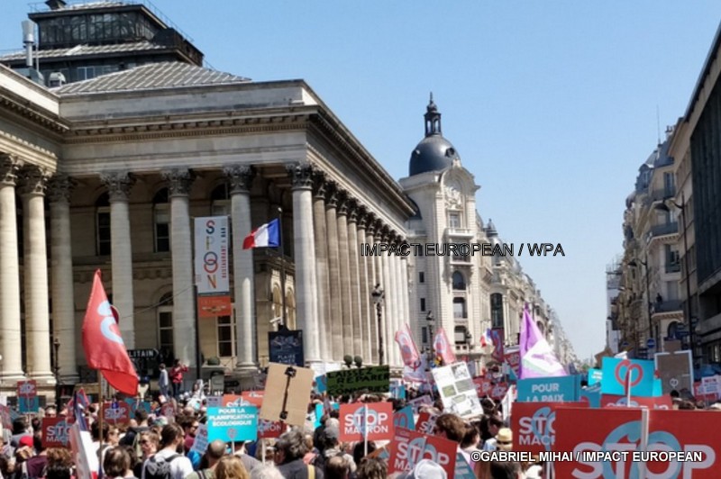 Dans le cortège, les manifestants portaient des revendications diverses, contre les réformes sociales et économiques du gouvernement, mais aussi la lutte contre le changement climatique ou l’accueil des migrants.