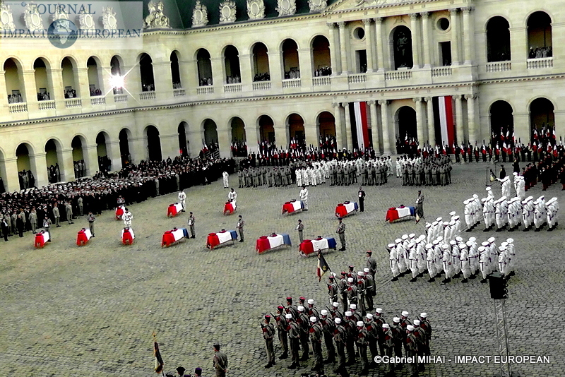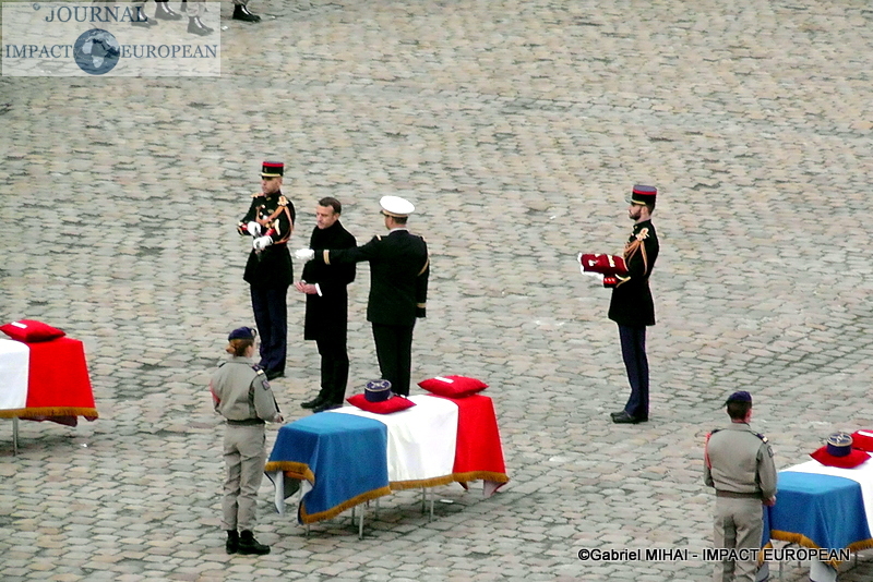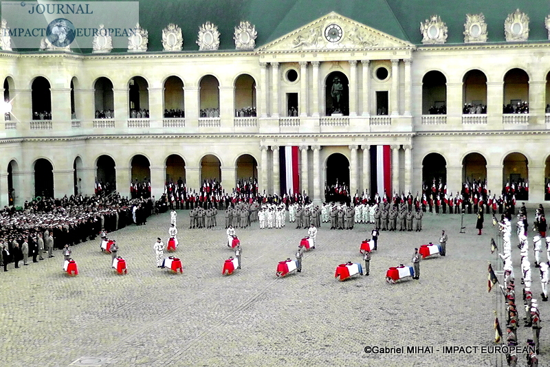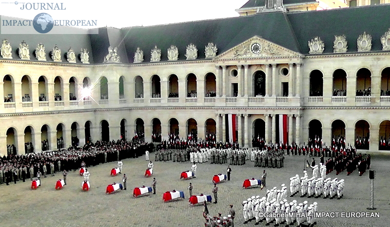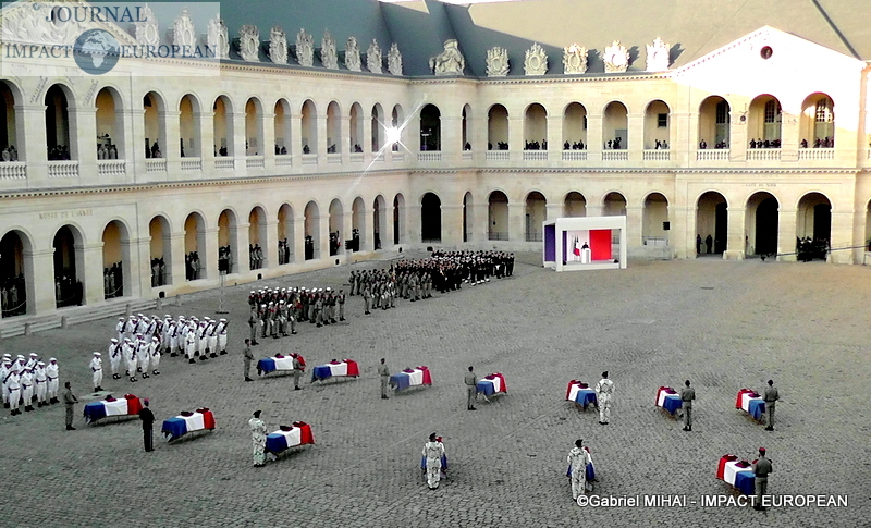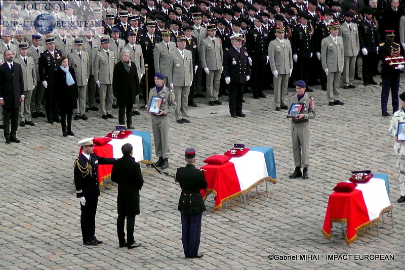 2.500 personnes se sont rassemblées dans la cour des Invalides lundi : les familles des victimes, des membres du gouvernement, mais aussi de nombreux anonymes. L’accès au bâtiment a ouvert au public dès 13h30. Des écoliers de Pau, Varces et Gap étaient également présents, aux côtés de maires et porte-drapeaux des villes des régiments endeuillés. « C’est toute la nation et toutes les générations qui doivent être impliquées dans cet hommage », avait expliqué l’entourage du président.