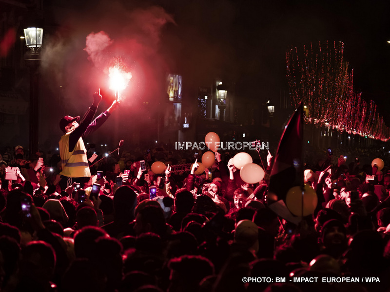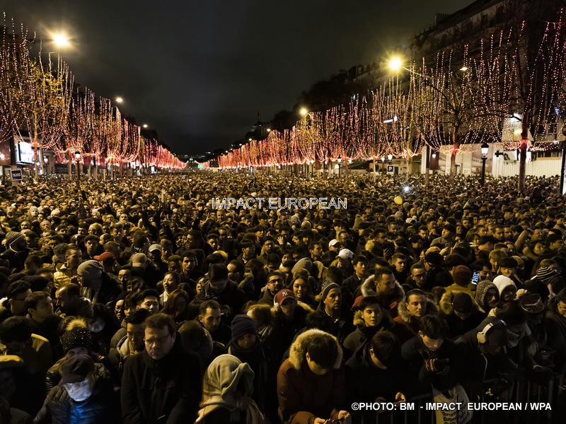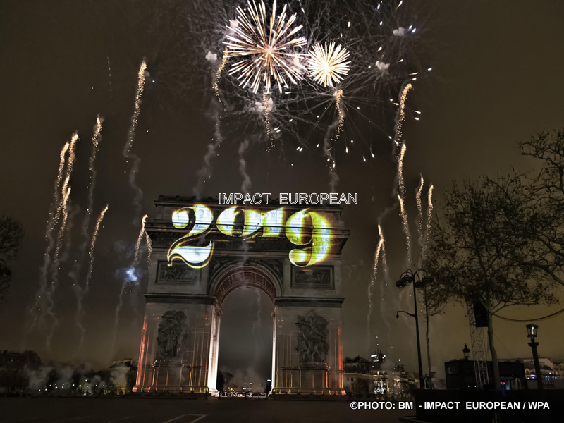 Ils étaient plus de 250 000 dont des gilets jaunes pacifistes, à s’être réunis sur la plus belle avenue du monde toute habillée de rouge, pour assister au passage à la nouvelle année. Bien qu’incertain à cause des manifestations des ‘Gilets Jaunes » qui avaient aussi décidé d’être présents pour l’événement, il a été décidé de maintenir les festivités, un service d’ordre important avec fouilles minutieuses dans le périmètre de sécurité avait été mis en place afin d’y éviter tout débordement et violences urbaines, les contenants en verre ont aussi été interdits et toute personne un peu top éméchée risquait de passer la nuit en cellule de dégrisement avec une amende de 135 euros. Il en a été de même aux abord du Trocadéro et du Champ de Mars. Toutefois, comme le révèle « Le Parisien », plus de 277 véhicules ont été calcinés en Ile de France dont 148 à Paris et dans la petite couronne. Selon les mêmes sources, le nombre de voitures brûlées dans les Yvelines est passé de 23 l’an dernier à 54 cette année. On retrouve cette triste tradition dans les grandes villes dans toute la France telles que Marseille, Bordeaux, Lyon, Nantes ou Strasbourg…