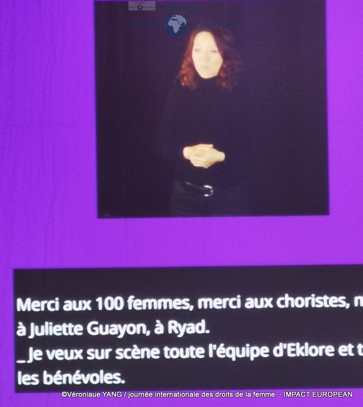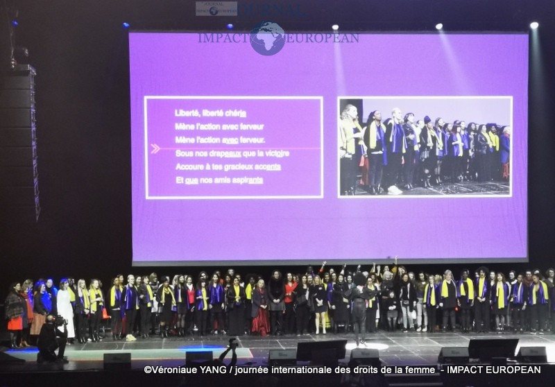 Toujours dans le cadre de la journée du 8 mars, le Zénith de Paris offrait un spectacle en rapport avec l’actualité: « Debout Citoyennes », une création Eklore (association née en 2015 dont les plus de 300 cercles de résonance collective libérant les émotions et l’intelligence de coeur pour travailler notre humanité dans les sociétés et la Société) où l’on retrouvait 12 femmes (artistes, entrepreneuses, mères, militantes… ) entourées d’une centaine d’autres pour chanter leur appel au monde au rythme des danseuses et de leurs tambours et témoigner de leur expérience inédite de médit’action et répondre à la question: « Pour quel monde te lèves-tu le matin? . »Faites du changement de société une fête !.. Il y a de la joie quand le vivant s’en mêle !.. En cette journée hautement symbolique, hommes et femmes, unissons-nous pour rendre hommage à ces Citoyens au féminin qui se lèvent le matin pour un monde plus humain », a déclaré l’organisatrice.