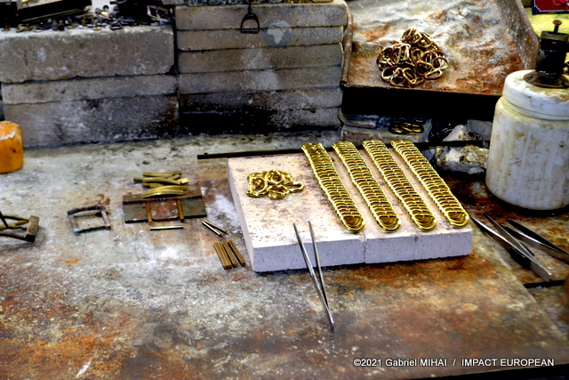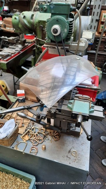 La première opération est le choix de la forme: carrée, rectangulaire ou ovale. On passe ensuite au cambrage, à la soudure à l’argent massif, à l’emboutissage, au dégraissage des pièces dans des tonneaux remplis de sciure, à la mise sous presse, à l’assemblage du rouleau puis de l’ardillon sur le cadre préalablement soudé. Toutes ces étapes de fabrication sont restées les mêmes depuis 1890. Il faut jusqu’à 17 étapes pour fabriquer une simple boucle. Réalisé avec les gestes d’hier, chaque accessoire métallique de maroquinerie ou d’harnachement, doit résister au temps.