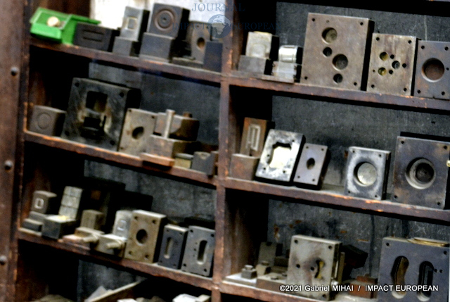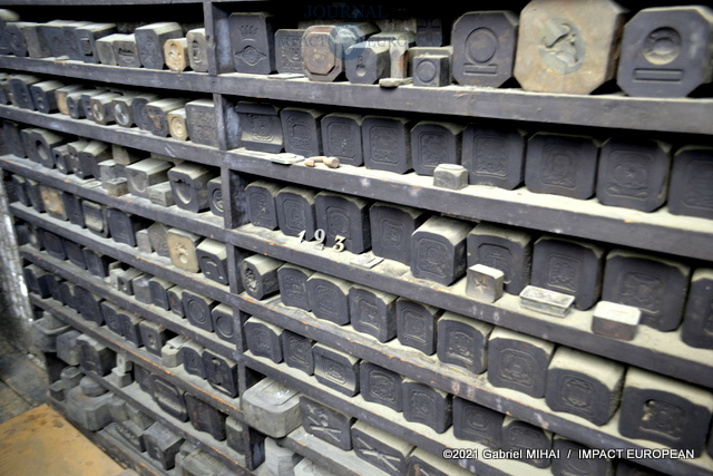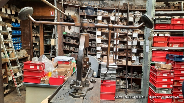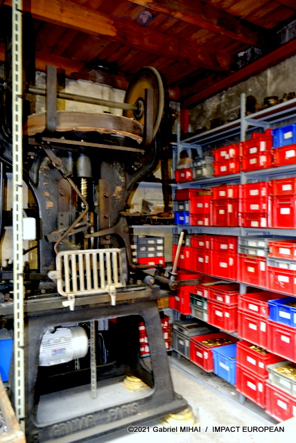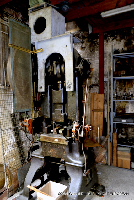 On découvre d’anciennes presses Crimar ainsi que 2 machines U.S. The Baird, témoins de la Grande Guerre. Mises en vente en 1919 par les Américains, elles leur servaient à fabriquer leur propre matériel. Acquises par la Maison Poursin, entretenues et régulièrement graissées, ces pièces de musée pourraient reprendre du service si nécessaire.