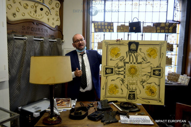 En 1952, les équipements pour le cheval disparaissent complètement . Cette année là, André Poursin succède à son père et entreprend une modernisation progressive poursuivie par son fils Jacques dès sa reprise en 1969. Dans les année 70-80, Poursin est partenaire privilégié de la maroquinerie de luxe grâce à ses créations et la confiance de ses clients internationaux.. Tous les grands noms de la Haute Couture ont passé le pas de la porte de la boutique, à commencer par Chanel, Dior, Yves St Laurent, etc… La solidité des pièces d’attelage, associée à la subtilité de l’accessoire de mode, se retrouvent dans les modèles en laiton destinés aux sacs.