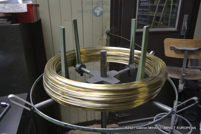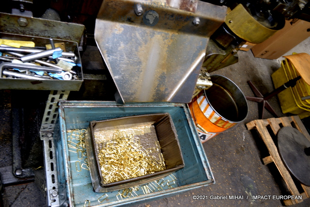 Les différentes opérations de finition sont effectuées à la main après les cambrages de fils de laiton, l’emboutissage, l’assemblage et les soudures à l’argent.