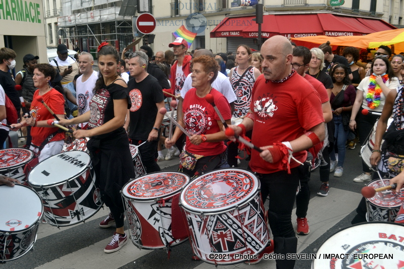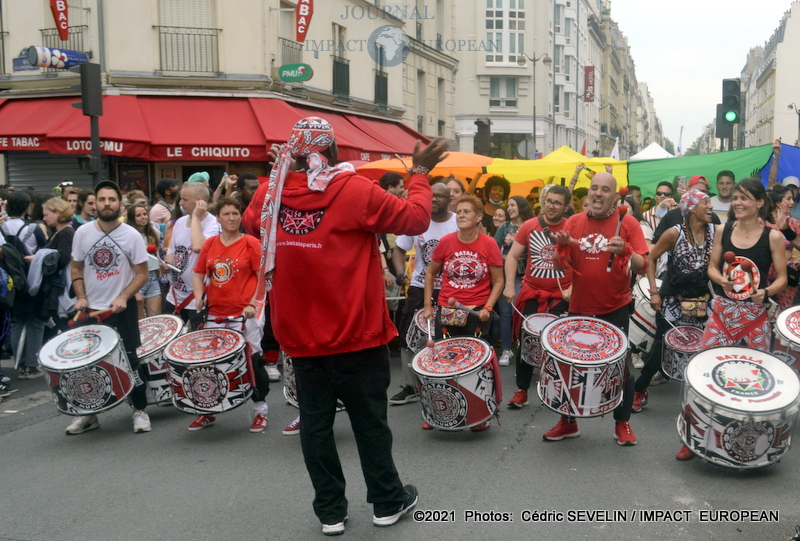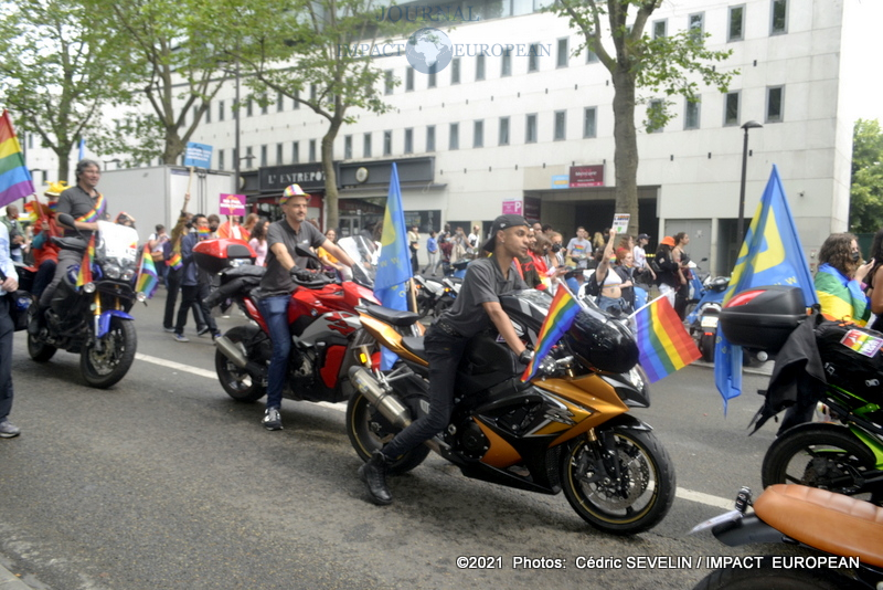 Après quelques averses, le temps est revenu au beau fixe, toutefois la température ne dépassait pas les 20°c. Plus de masque ni de couvre-feu. A 15h, le cortège est parti de l’église de Pantin au son des tambours. Les motos du Gai Moto Club, parées des couleurs arc-en-ciel, ouvraient la marche. Il a ensuite rejoint la porte de Pantin où l’on a pu rencontrer le Maire du 19è arrondissement, François Dagnaud. Dans une ambiance festive, il s’est poursuivi en passant par Jaurès, longeant le canal pour rejoindre le Bd Magenta jusqu’à son point d’arrivée vers 18h. L’événement a terminé vers 20h30. Parmi les participants, les Sœurs de la Perpétuelle Indulgence, les « Ours de Paris », les « Motards » ou des « Drag-Queen ».