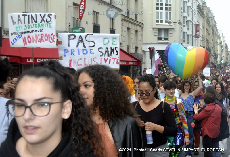 Paillettes, maquillage aux couleurs de l’arc-en-ciel paraient les manifestants qui étaient venus seuls ou accompagnés de leurs enfants et même de leur chien qui arborait les couleurs Lgbt. Tous revendiquaient que le fait d’être Lgbt ne devait pas les discriminer. Cette année, la marche était d’avantage politique, on le voyait sur le pancartes et les banderoles ( Macron coupable…).
