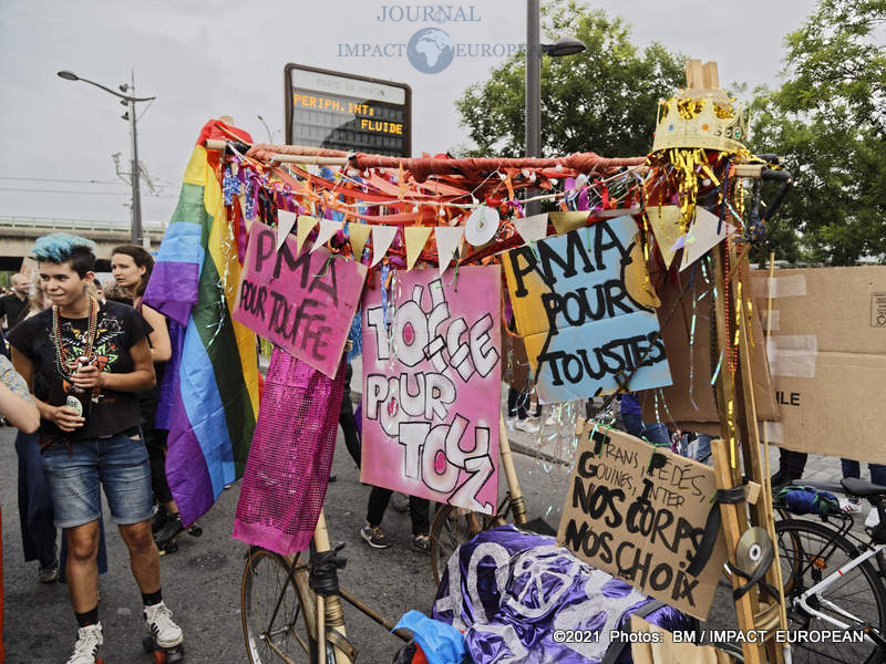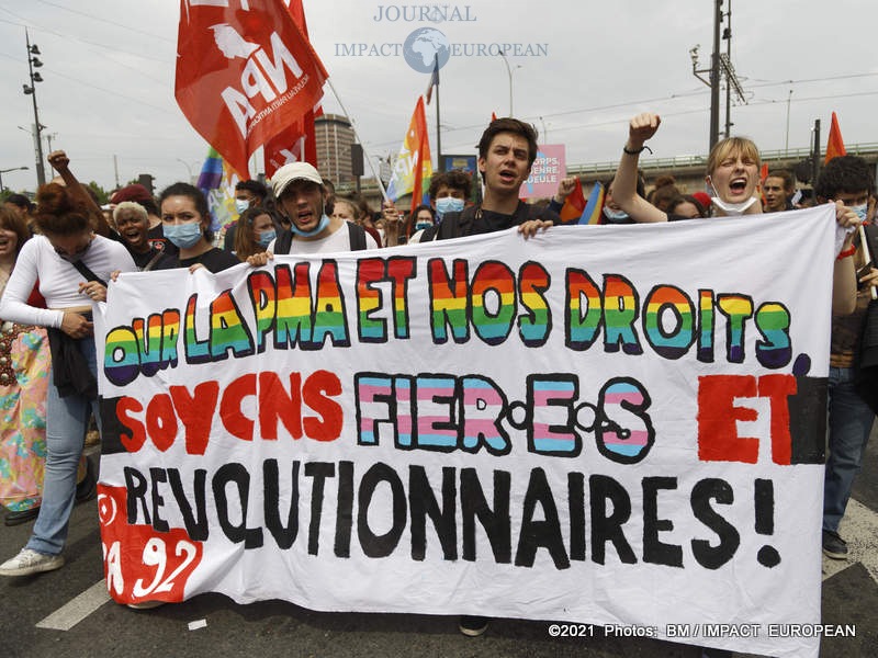 -L’élargissement de la PMA. L’Assemblée doit rendre définitif le projet de loi bioéthique, le 29 juin. L’élargissement de la PMA aux femmes seules et aux couples de femmes, n’est pas suffisant. La filiation trans fait aussi partie des demandes. La plupart des manifestants désiraient exprimer leurs colères.