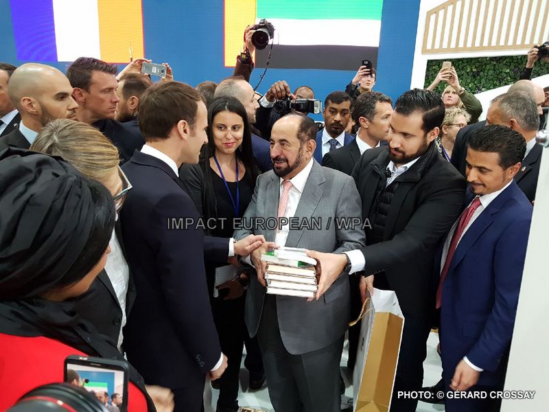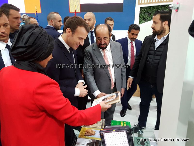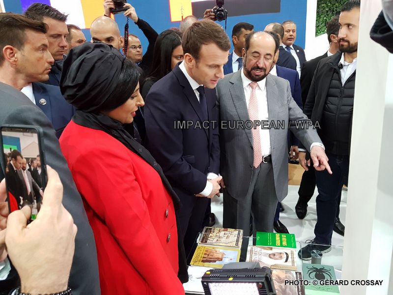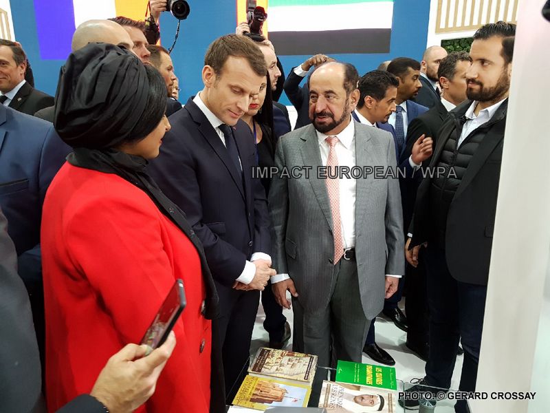 A la fin de sa visite au Salon du Livre, Emmanuel Macron a longuement rencontré Son Altesse Sheikh Dr. Sultan bin Muhammad Al Qasimi, chef d’Etat de Sharjah.