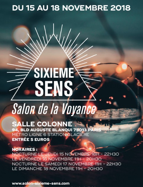 SIXIÈME SENS, SALON DE LA VOYANCE – Du 15 au 18 novembre 2018