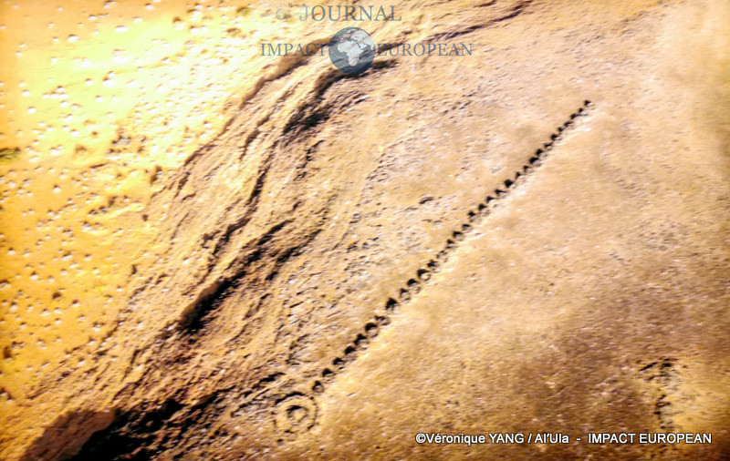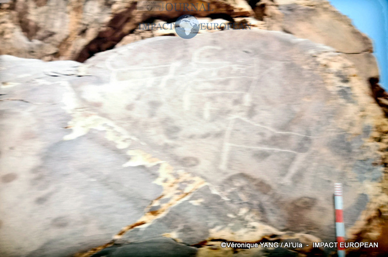 Les films exclusifs de Yann Arthus-Bertrand accompagnent la visite de l’exposition, dévoilant les recherches archéologiques (haches, bifaces, outils de coupe du Paléolitique, structures en pierre du Néolitique…) et montrant les sociétés et civilisations ayant existé dans la région qui renferme de nombreux vestiges préhistoriques représentés par des gravures rupestres (chasseurs, dromadaires, autruches, ibex, félins, bétail…) sur les parois rocheuses ainsi que des milliers d’inscriptions gravées et écrites dans les différents alphabets de l’Arabie antique (araméen, dadanite, thamoudéen, minéen, nabatéen, latin et grec).