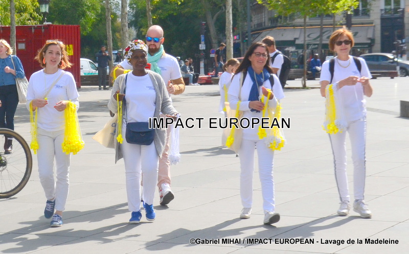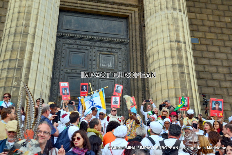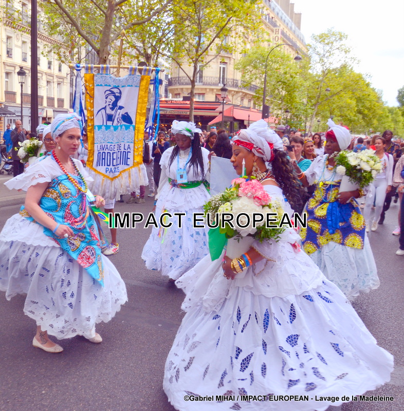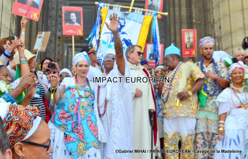 Réunis devant la porte fermée de l’église, les esclaves décidèrent ensuite de célébrer la fête sur le parvis et les marches du bâtiment depuis 1774, avec leurs rituels de Candomblé en instaurant une procession rythmée par des chants musicaux. encore aujourd’hui de l’Église de Notre Dame de la Conception de la Plage, patronne de Bahia, jusqu’à Bonfim, avec ses fameux rubans bracelets porte‐bonheur. En 1998, le premier lavage parisien a lieu et en 2002, sur une idée de Roberthino Chavès, danseur au Paradis Latin, l’Association franco-brésilienne “Viva Madeleine”est créée pour valoriser la culture brésilienne en Europe.
