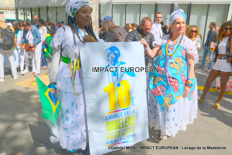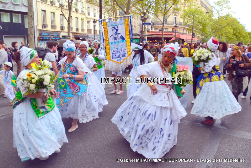 Le Festival Culturel Brésilien du Lavage de la Madeleine est le plus grand événement brésilien dans toute l’Europe. Créé en 1998 par Roberto Chavez, danseur né à Santa Amaro-Bahia Brésil, il s’est tenu à l’église du Sacré Coeur puis a été transféré à la Madeleine en 2002. Il accueille chaque année plus de 30 000 personnes et se déroule généralement au mois de septembre sauf l’an dernier où l’association Viva Madeleine, organisatrice de l’événement a voulu le faire coincider avec la Coupe du Monde de Football, sport incontournable de la nation marquant ainsi le lien pour l’inclusion sociale et la paix entre les peuples, et la venue du chanteur et ex-ministre de la culture Gilberto Gil, invité sur le Grand Défilé pour la Paix.