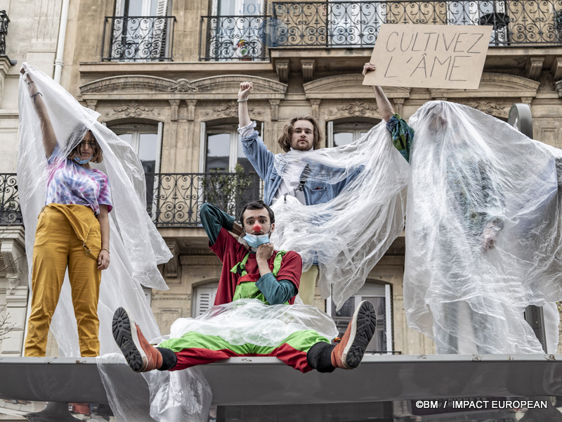 Divers cortèges composait la manifestation principale de 14h. Parmi eux, celui des intermittents qui occupent l’Odéon depuis début mars et ceux des Gilets Jaunes avec leurs têtes de file.