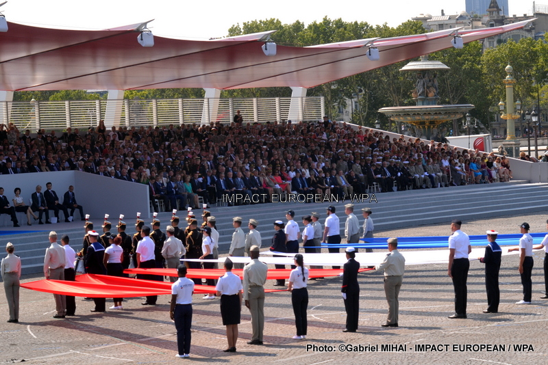 Les emblèmes des deux pays asiatiques invités ont ouvert le défilé aux côtés de ceux de la France, escortés par sept soldats de chaque nationalité.