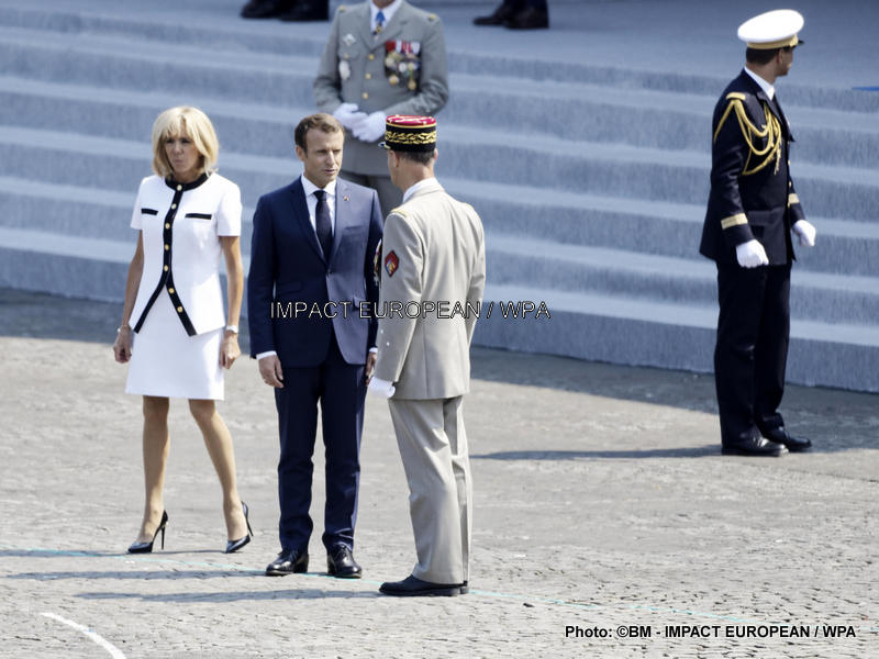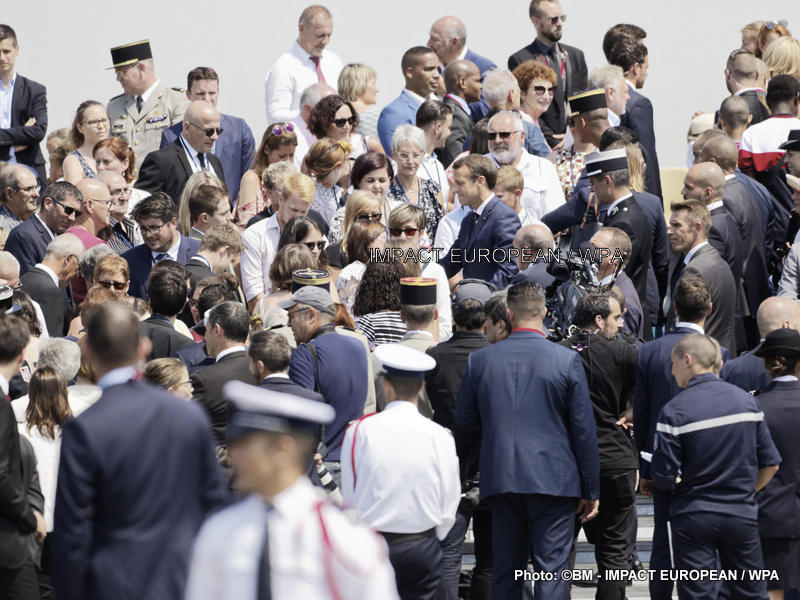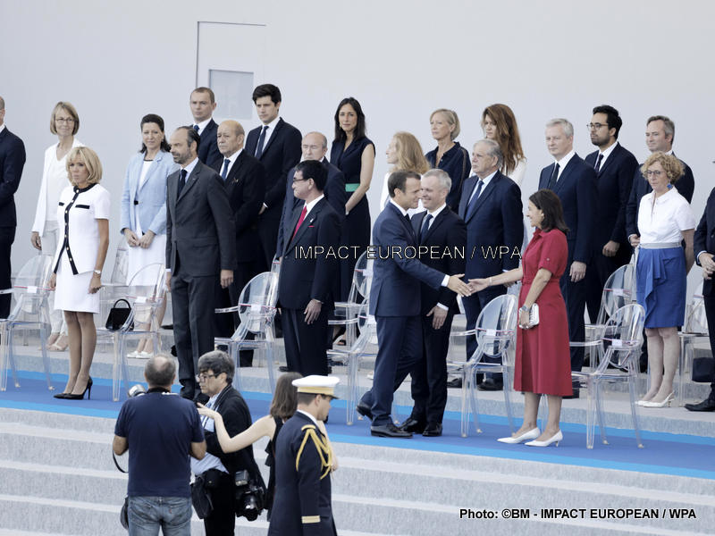 Après le défilé du 14 Juillet, le président Emmanuel Macron, la première dame et le gouvernement se sont rendus aux tribunes pour saluer le public et les soldats présents.