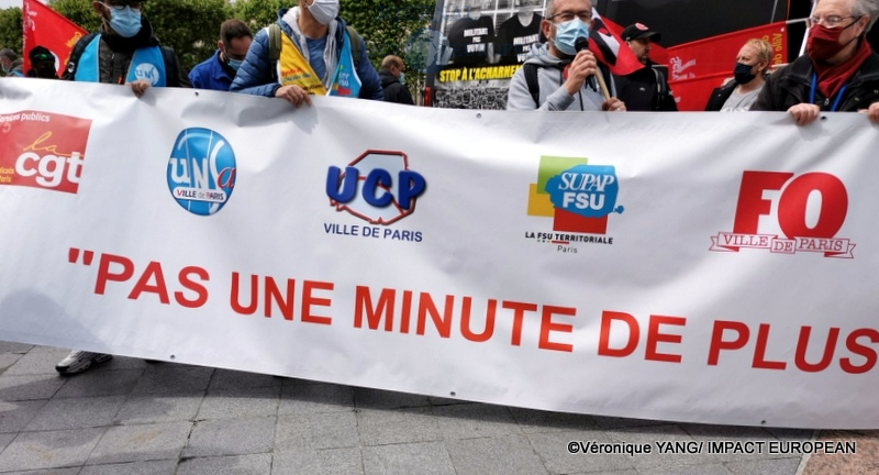 Jeudi 20 mai, l’intersyndicale des agents de la ville de Paris a manifesté contre la réforme de la fonction publique votée en 2019. Le cortège est parti de la Mairie du XIème pour se rendre à l’Hôtel de Ville. Près de 1 500 personnes y participaient.