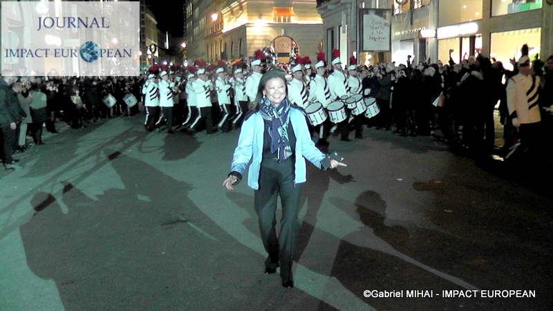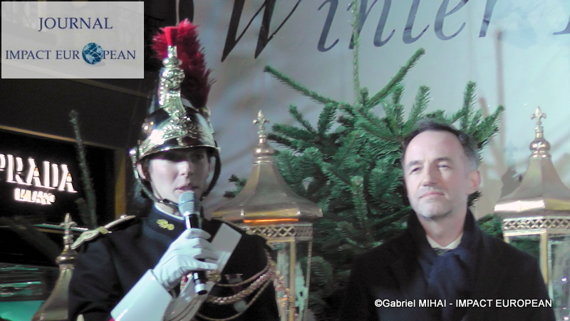 Au son de la musique de la Garde Républicaine, Sandrine Quétier et Laurie Cholewa ont présenté et animé la soirée. La fanfare a arpenté le faubourg St Honoré de la rue de Castiglione à la rue Royale dans une atmosphère et un décor féerique de sapins verts miniatures scintillants dans les rues et les boutiques de luxe.