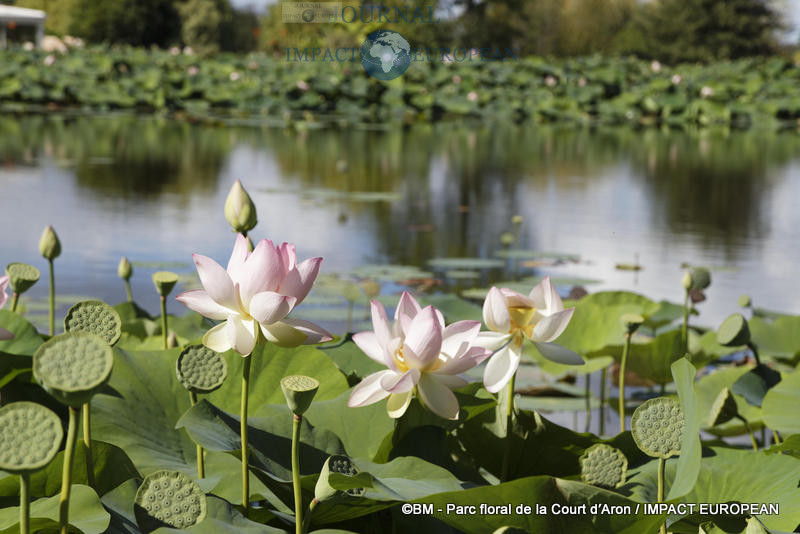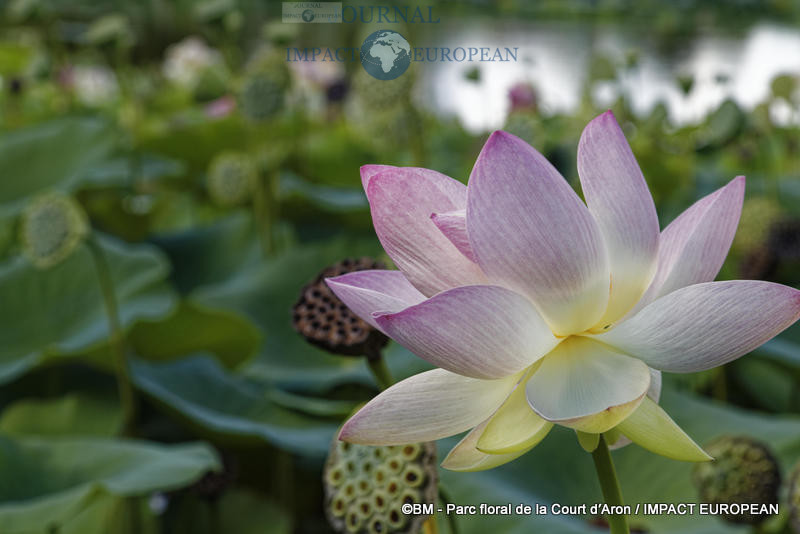 La floraison éphémère des lotus d’Asie en juillet se renouvelle quotidiennement, créant la surprise dans ce Parc de Vendée, contribuant à développer une atmosphère tropical.