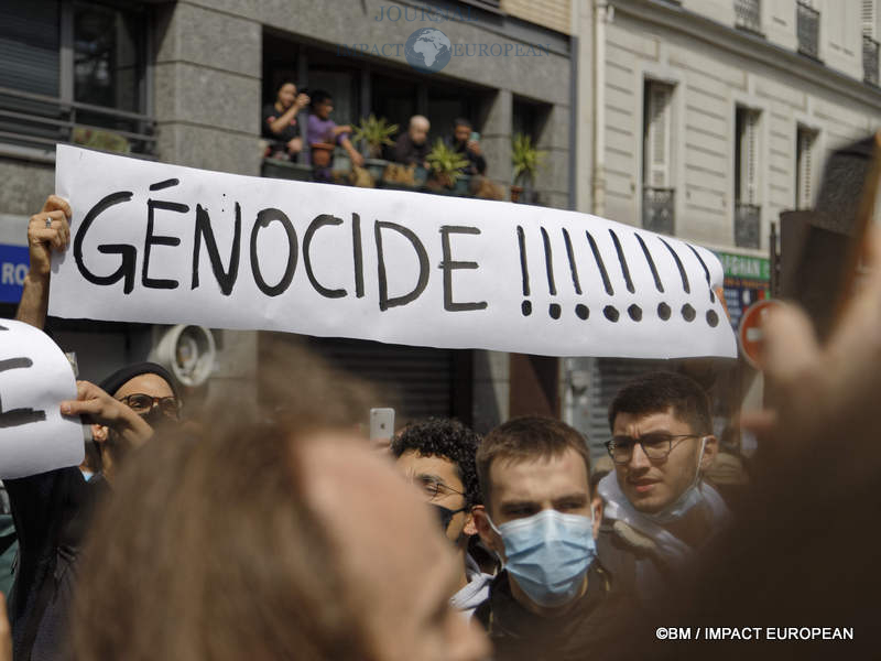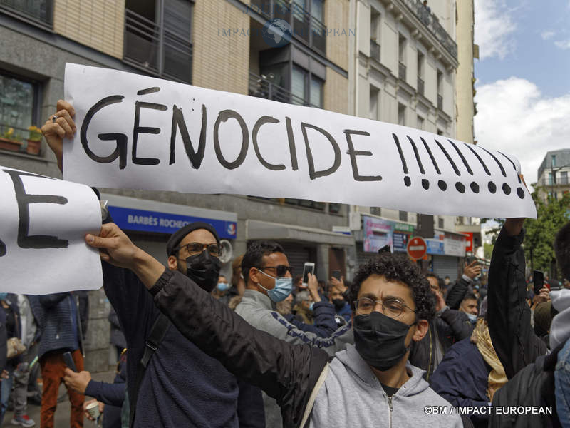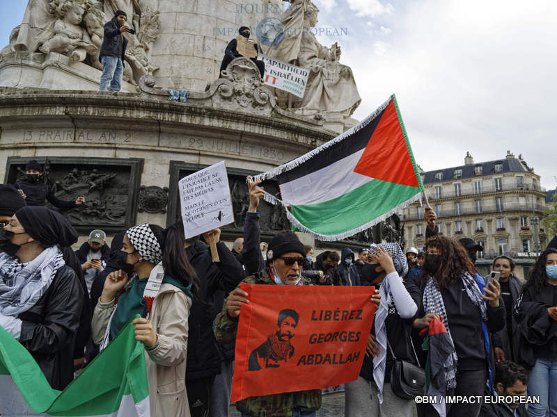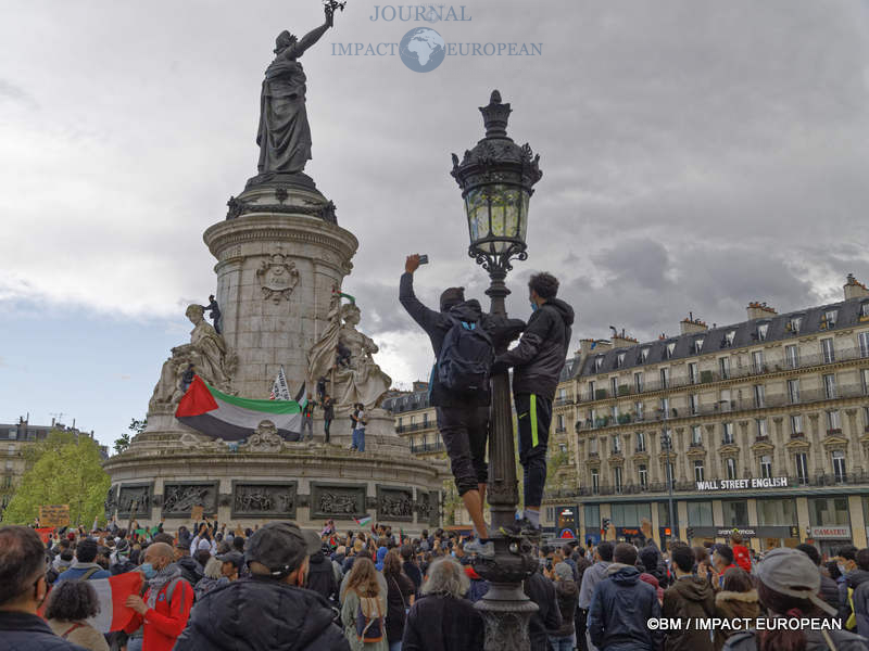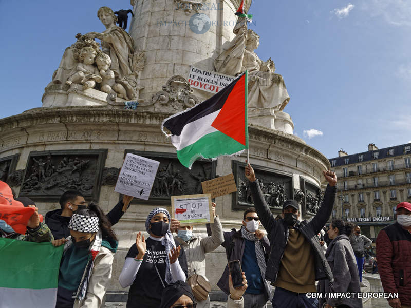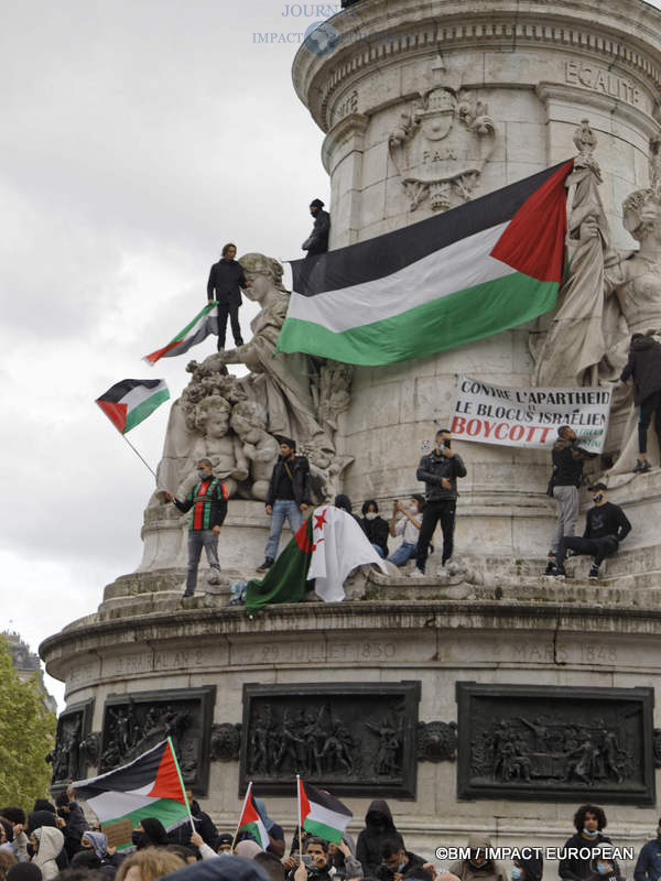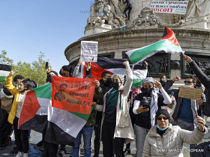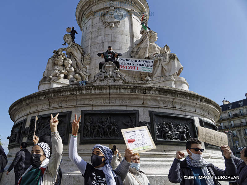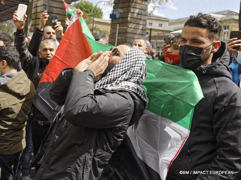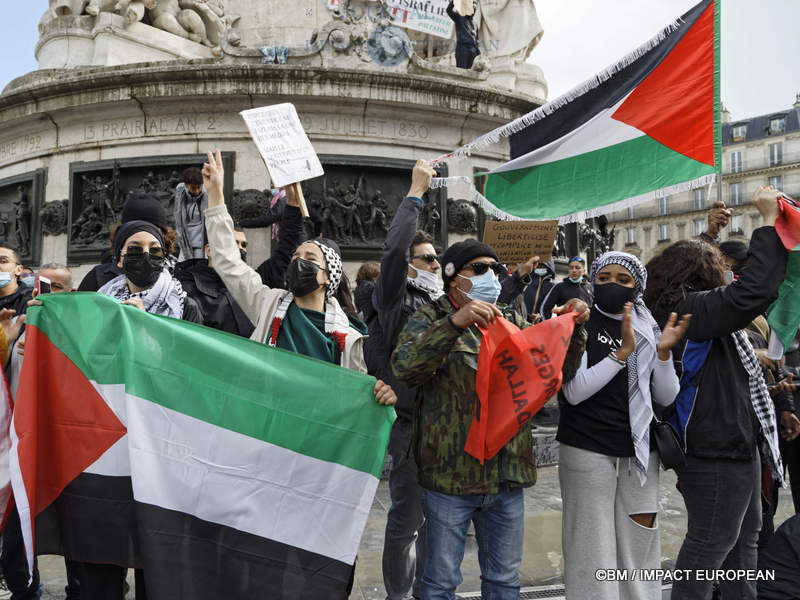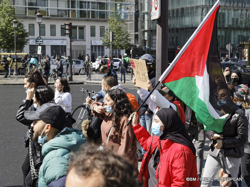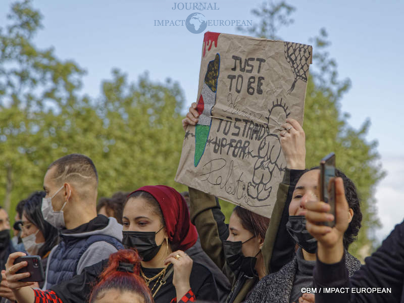Les manifestants criaient « Libérez Gaza ! », « Palestinian live matter » ou « Sauvez Cheikh Jarrah », quartier de Jérusalem-Est où des familles palestiniennes sont menacées d’éviction par des colons israéliens.