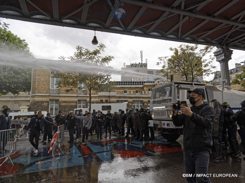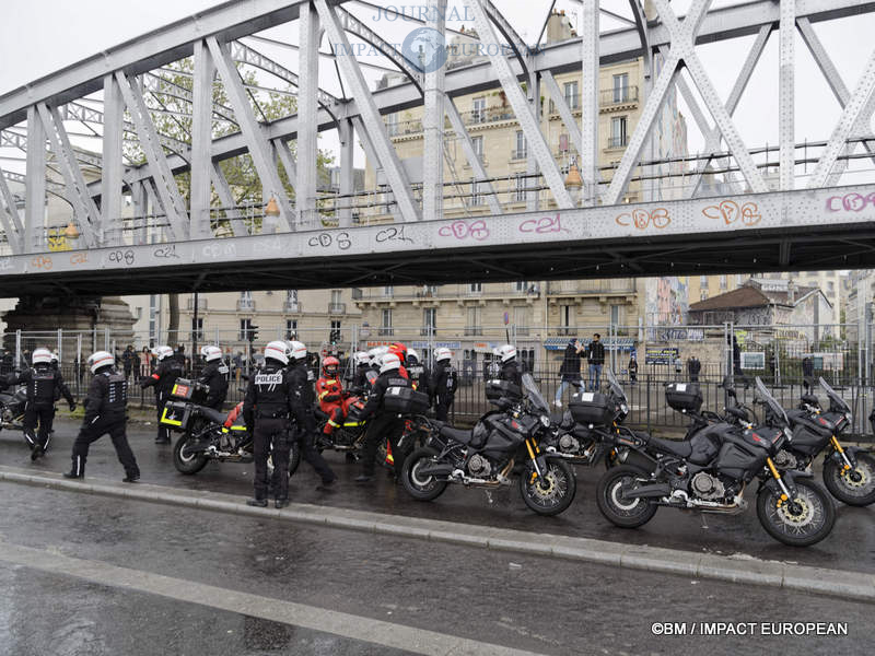 De premiers regroupements de personnes ont été constatés dans le secteur de Barbès dès le début d’après-midi, indique la préfecture de Paris. Ils ont aussitôt été dispersés par les forces de l’ordre avec un canon à eau et gaz lacrymogènes. Des banderoles brandies par certains manifestants ont également été confisquées. 4.200 policiers et gendarmes sont mobilisés, selon la préfecture de police. Elle a par ailleurs pris un arrêté de fermeture des commerces dans le secteur de Barbès-Rochechouart.