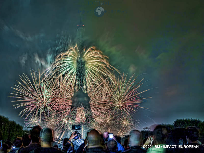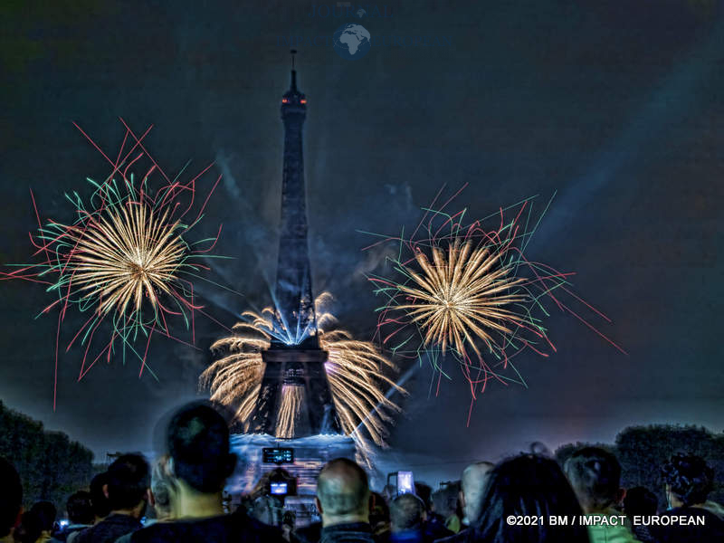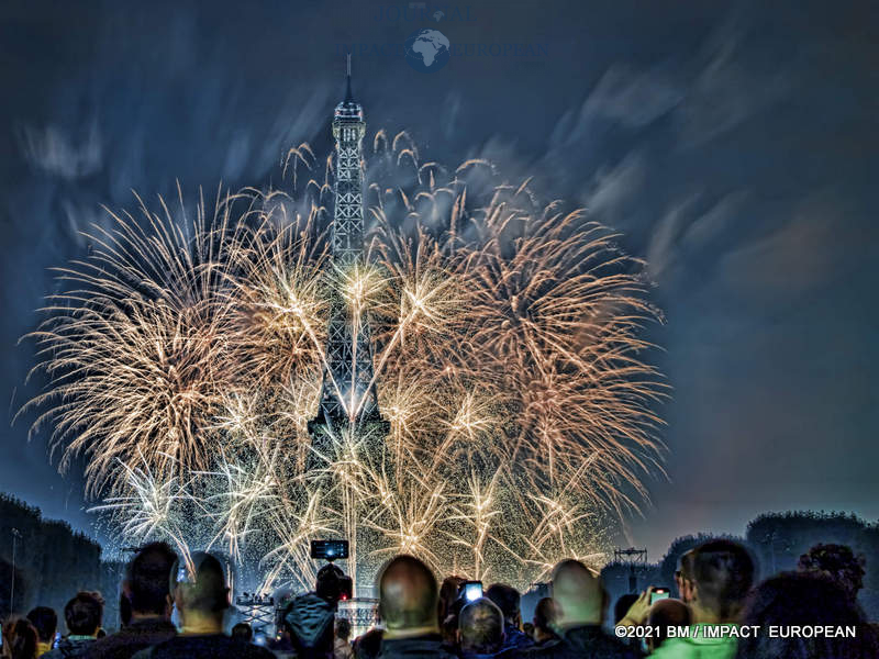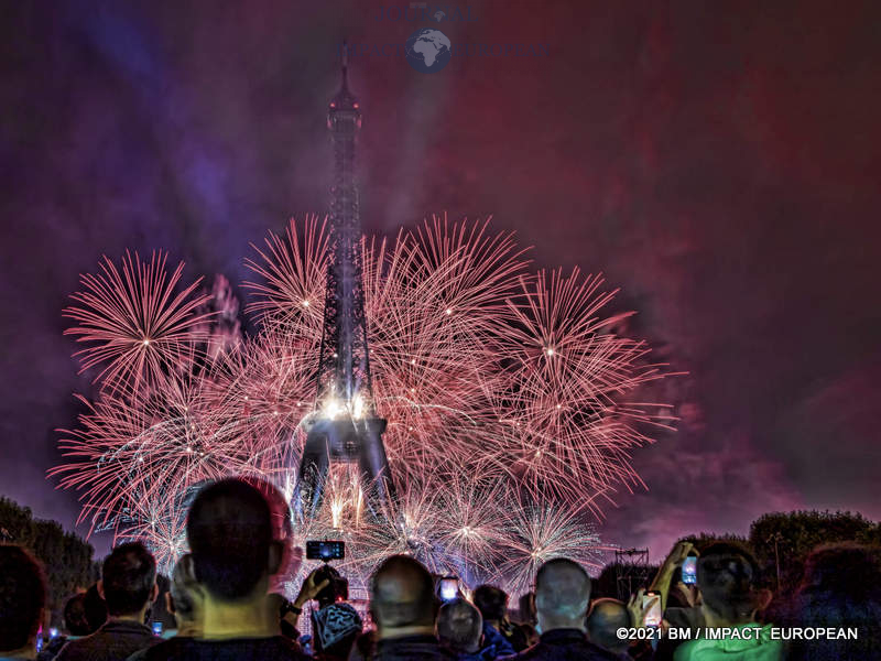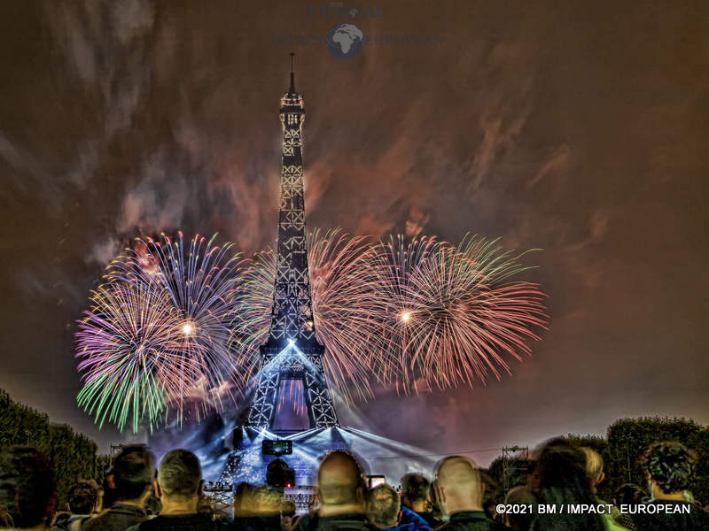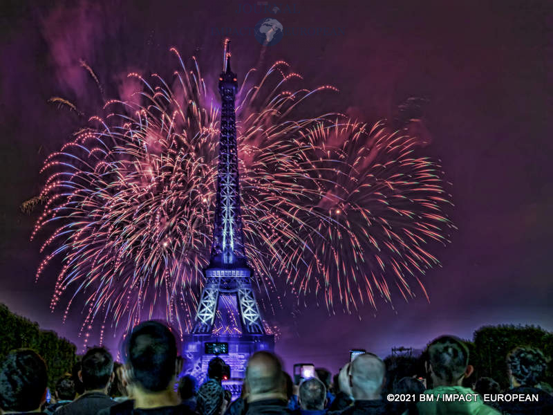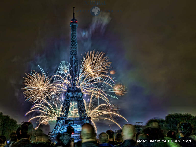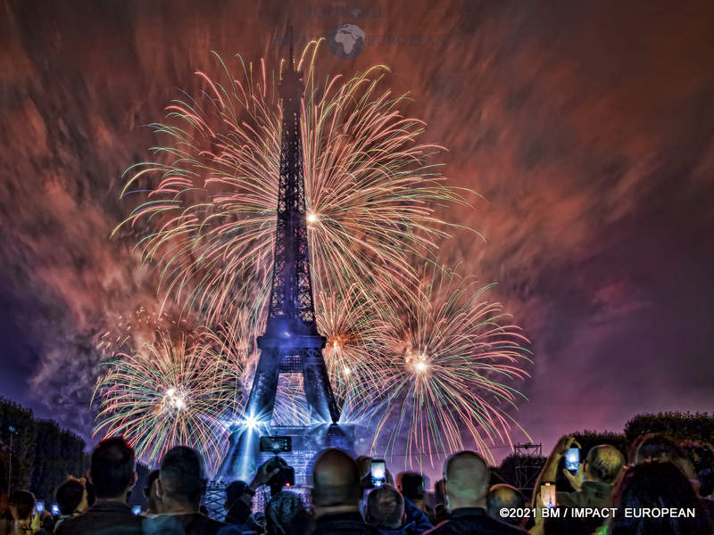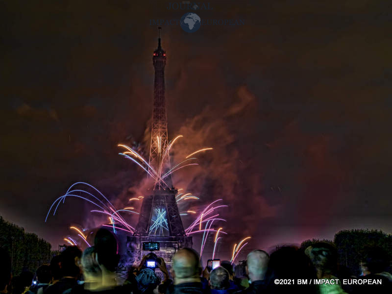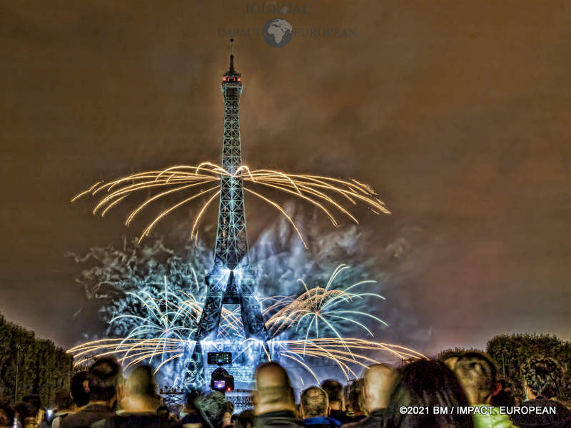 Cette année, le thème choisi était « La Liberté ». Il commémorait la liberté retrouvée après les contraintes liées à la pandémie. La durée était de 19 minutes contre 35 l’an dernier. Il se composait de 7 tableaux de 2 minutes chacun. La société Ruggieri a conçu le spectacle sous la direction artistique de David Proteau. Le stricte protocole sanitaire a permis aux 15 000 personnes présentes sur le Champ de Mars d’y assister.