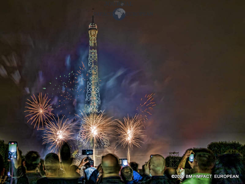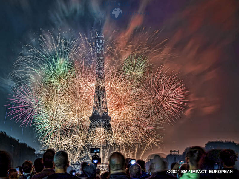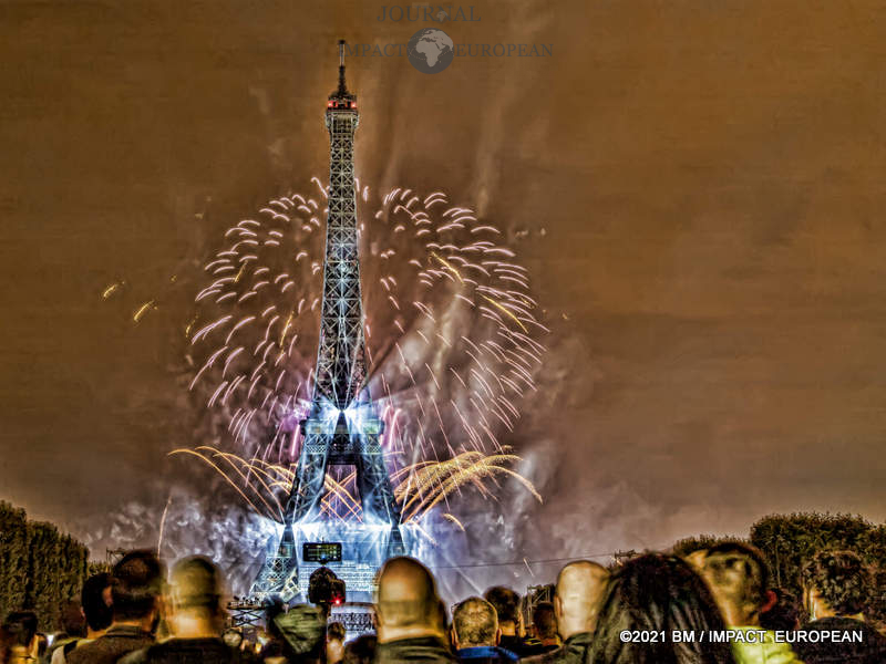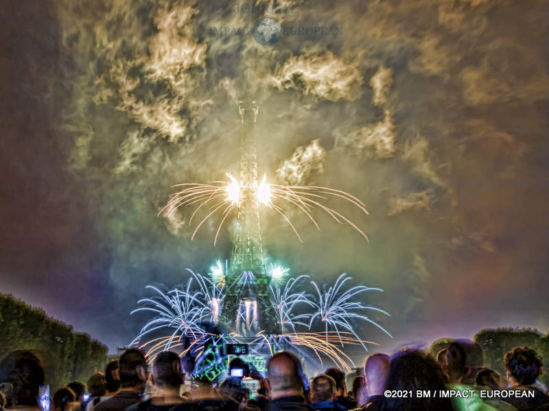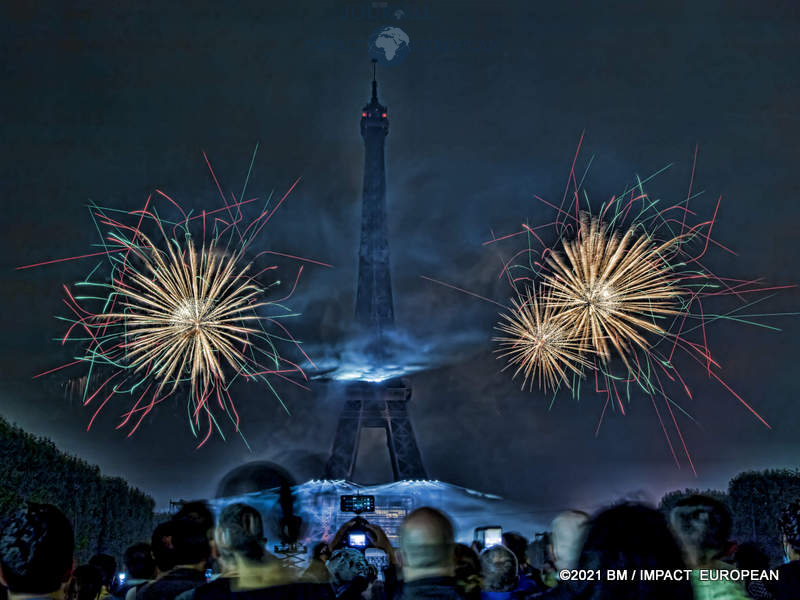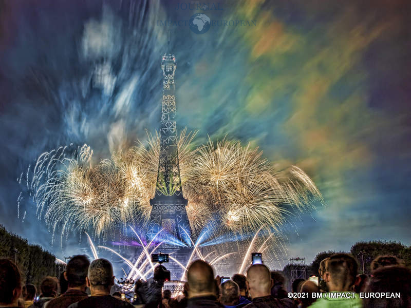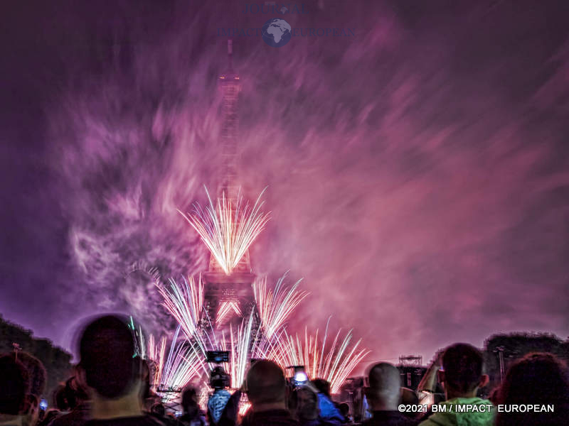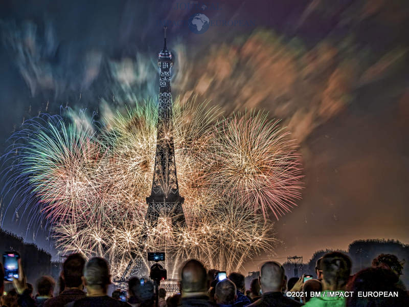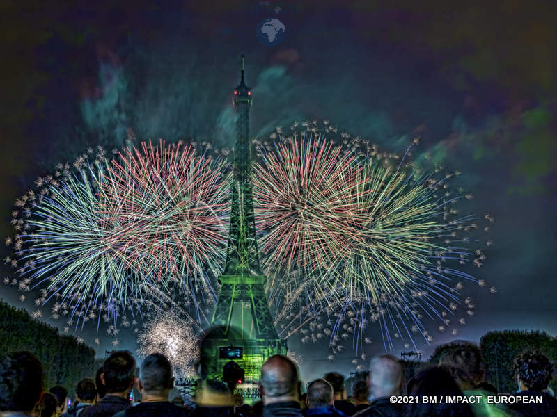 Cette année, le thème choisi était « La Liberté ». Il commémorait la liberté retrouvée après les contraintes liées à la pandémie. La durée était de 19 minutes contre 35 l’an dernier. Il se composait de 7 tableaux de 2 minutes chacun. La société Ruggieri a conçu le spectacle sous la direction artistique de David Proteau. Le stricte protocole sanitaire a permis aux 15 000 personnes présentes sur le Champ de Mars d’y assister.