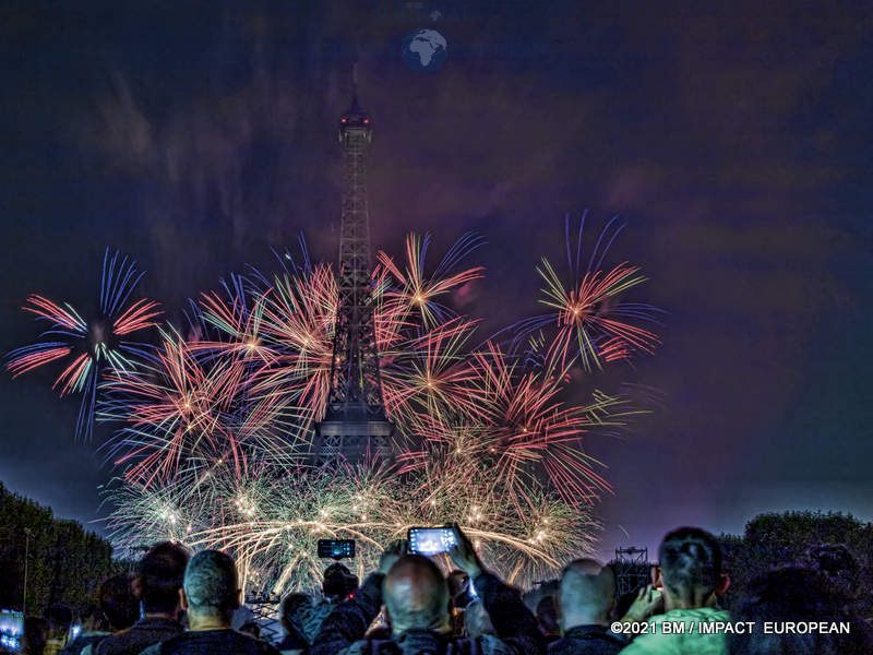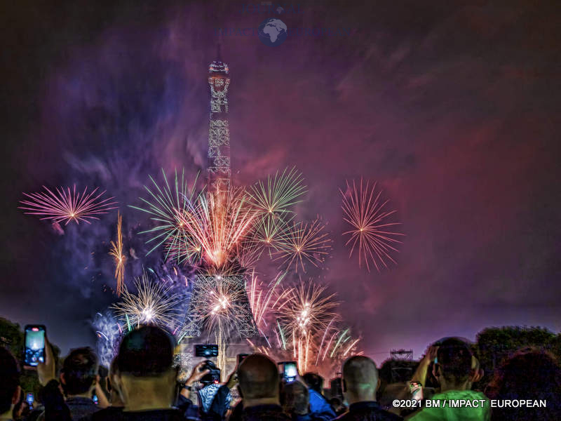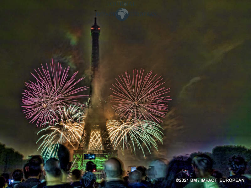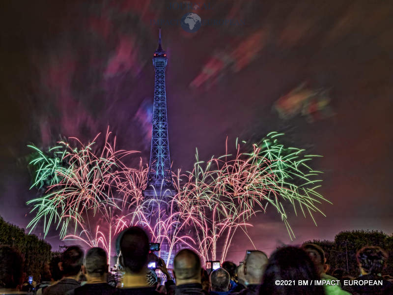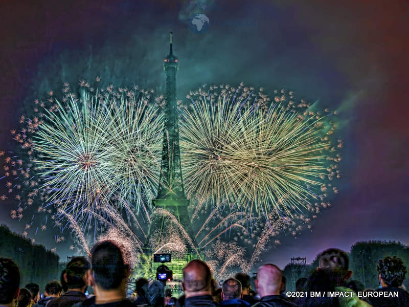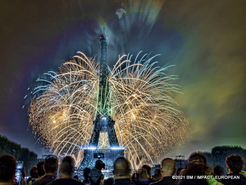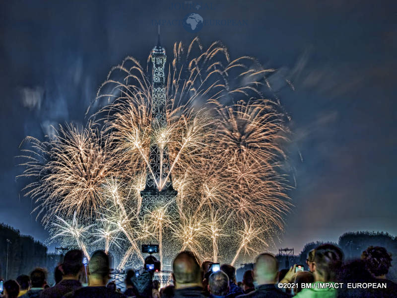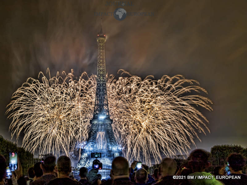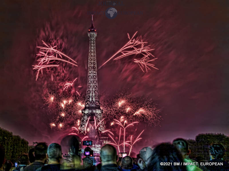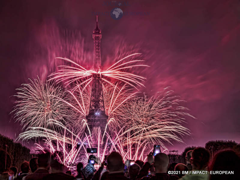 Cette année, le thème choisi était « La Liberté ». Il commémorait la liberté retrouvée après les contraintes liées à la pandémie. La durée était de 19 minutes contre 35 l’an dernier. Il se composait de 7 tableaux de 2 minutes chacun. La société Ruggieri a conçu le spectacle sous la direction artistique de David Proteau. Le stricte protocole sanitaire a permis aux 15 000 personnes présentes sur le Champ de Mars d’y assister.