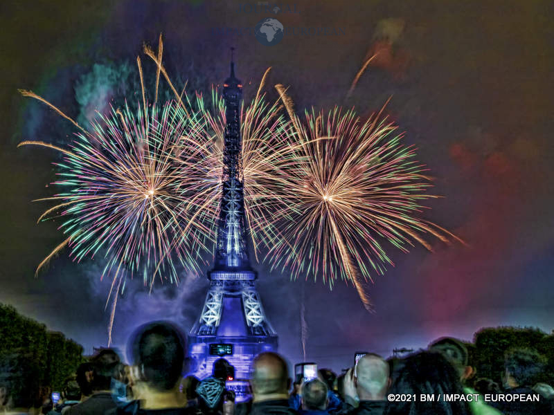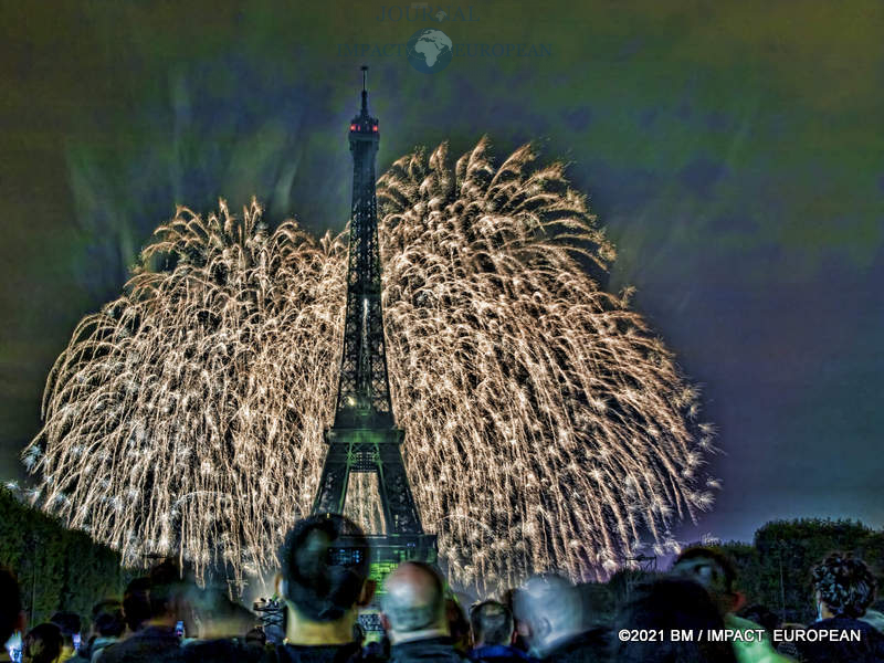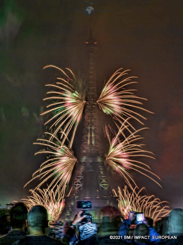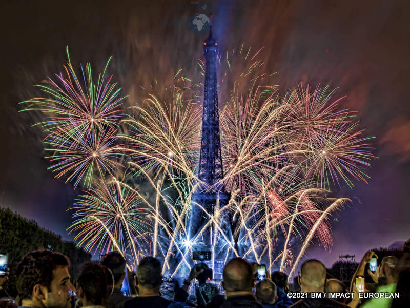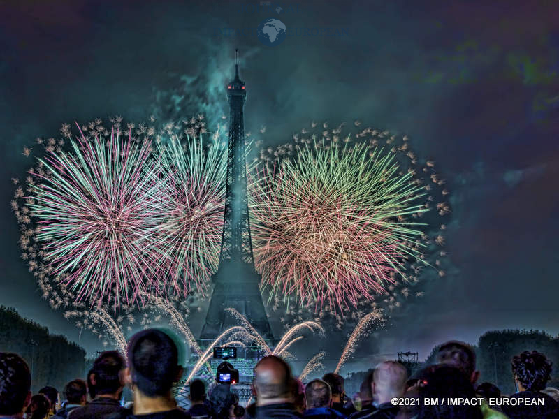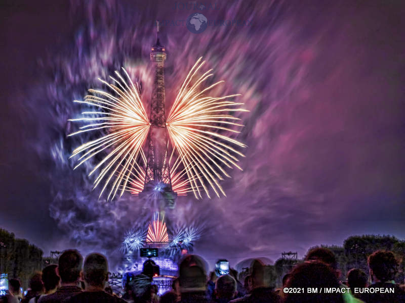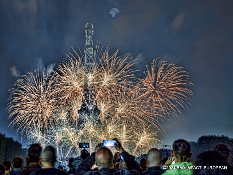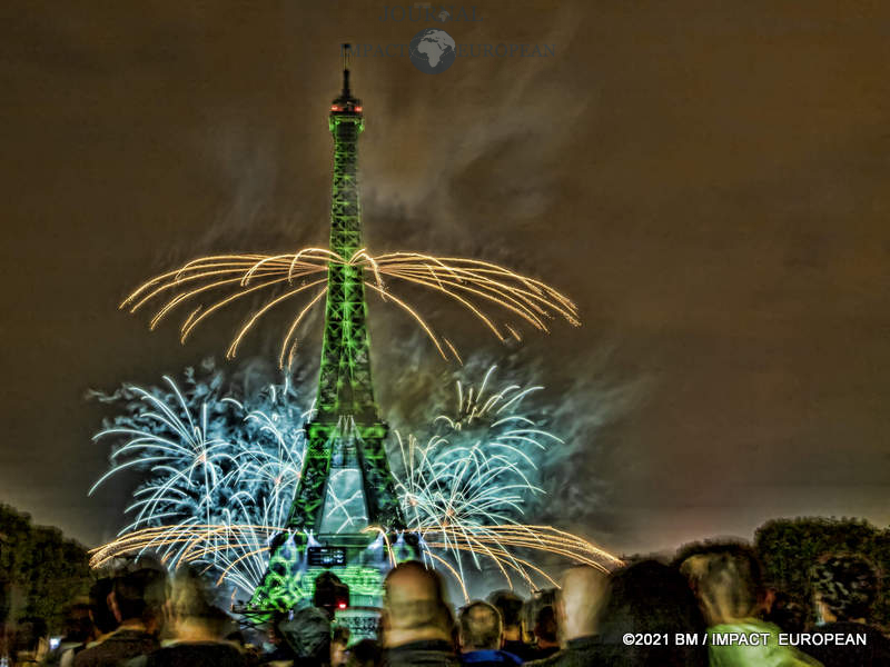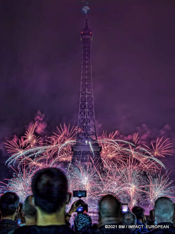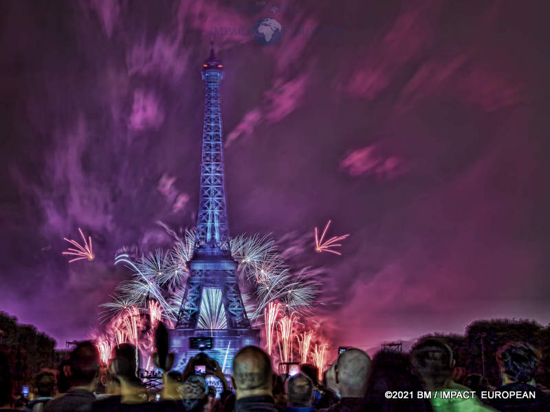 Cette année, le thème choisi était « La Liberté ». Il commémorait la liberté retrouvée après les contraintes liées à la pandémie. La durée était de 19 minutes contre 35 l’an dernier. Il se composait de 7 tableaux de 2 minutes chacun. La société Ruggieri a conçu le spectacle sous la direction artistique de David Proteau. Le stricte protocole sanitaire a permis aux 15 000 personnes présentes sur le Champ de Mars d’y assister.