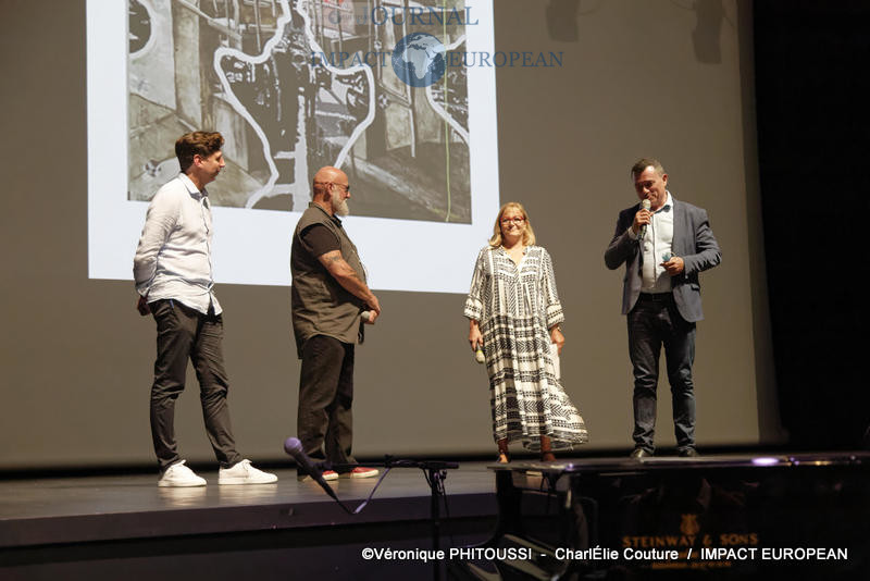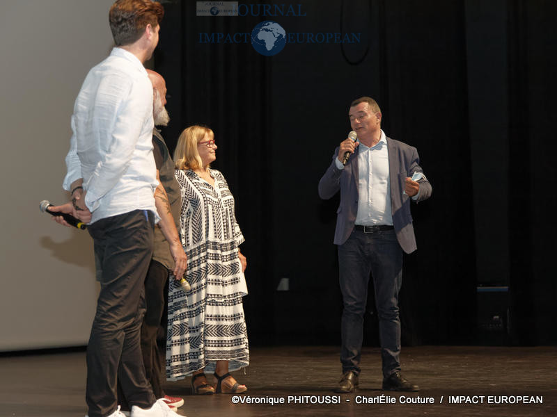 François Mancuso, dit Franck Mancuso, scénariste, réalisateur et producteur français accompagné d’Agnès Blanchot, comédienne, invités aux Hérault du Cinéma et de la Télévision 2020 ont assisté au vernissage en présence du maire Gilles D’Ettore.