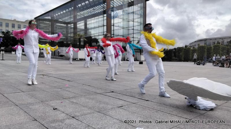 A la fin du stage, la récompense est le grand spectacle de 30 minutes sur le thème de l’année en extérieur sous forme de flashmob. Cette année le thème choisi est les ailes du bonheur, le show a eu lieu sur le grand plateau central situé dans le parc André Citroën.