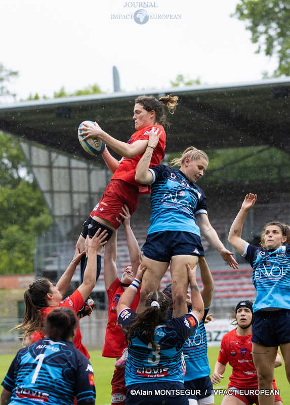 4, 5 et 6, il s’agit des numéros portés respectivement par Audrey Forlani, Amélie Mugnier et Axelle Berthoumieu. L’équivalent du triangle d’or a fourni une prestation de très, très haut niveau, au point de déconcerter les pourtant expérimentées Mignot, N’Diaye, Boujard et consorts, assez peu en vue côté héraultais. Moins en tout cas que Rose Bernadou. La droitière a fait honneur à ses galons d’internationale, ni « Coco » Lindelauf ni Célia Domain n’étant les premières venues en matière de mêlée fermée.