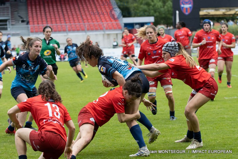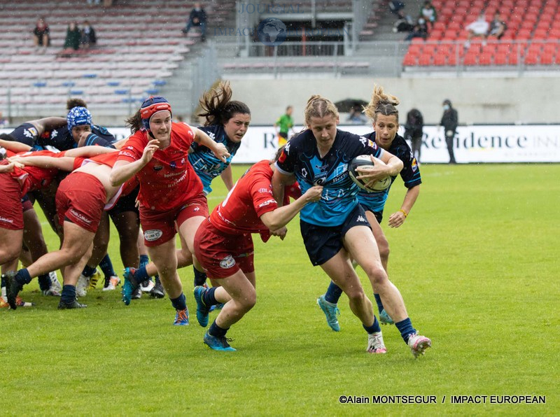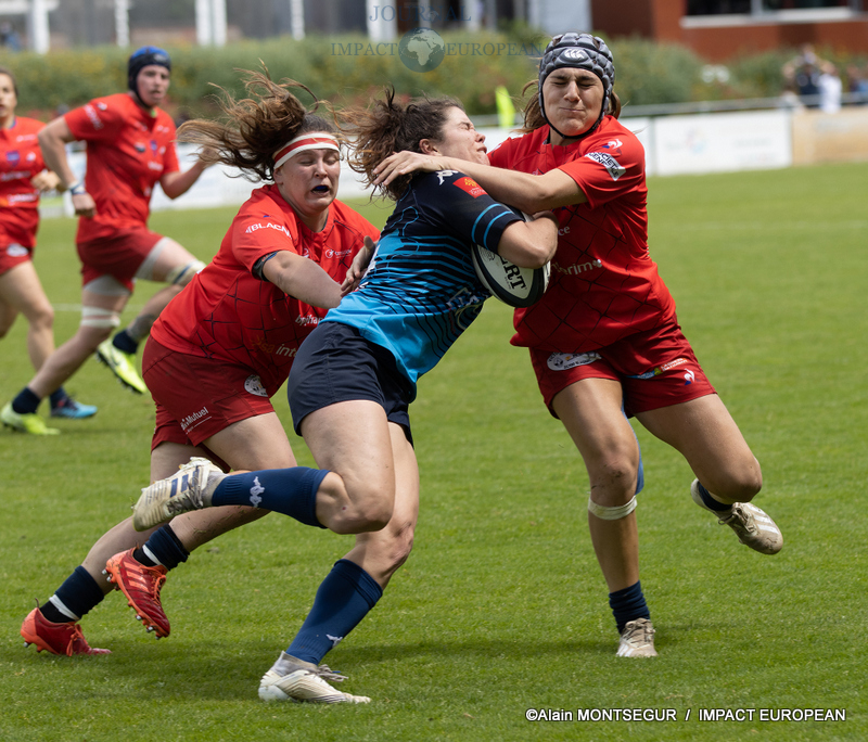 Non seulement Blagnac rétablit l’équilibre en mêlée en dépit de la très bonne prestation de Rose Bernadou, mais les nombreuses fautes commises de part et d’autre se soldent en quelque sorte par un interminable statu quo. Pour la première fois depuis belle lurette, les légendaires « coccinelles » vont passer une mi-temps sans inscrire le moindre point ! Et, qui plus est, sans se procurer d’occasions significatives tellement leurs rivales auront mis ce qu’il faut de pression.