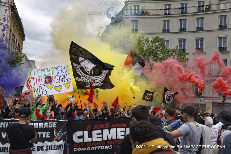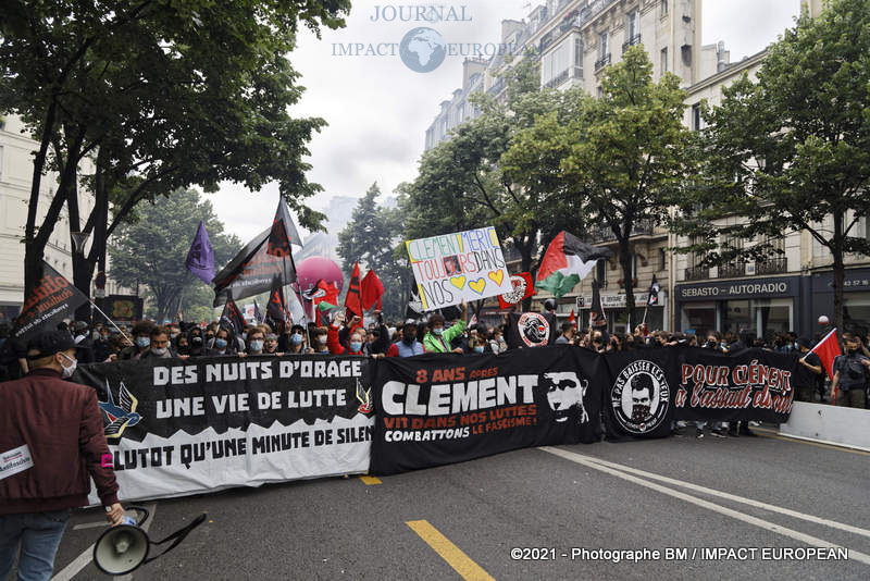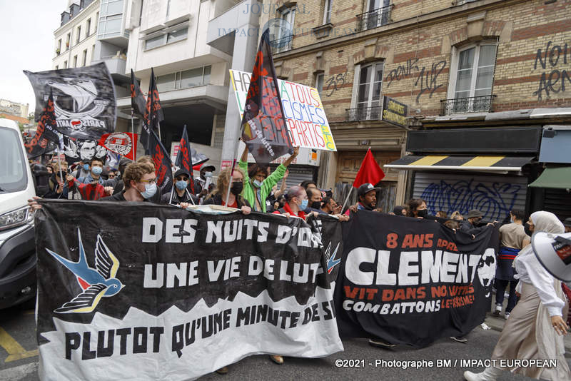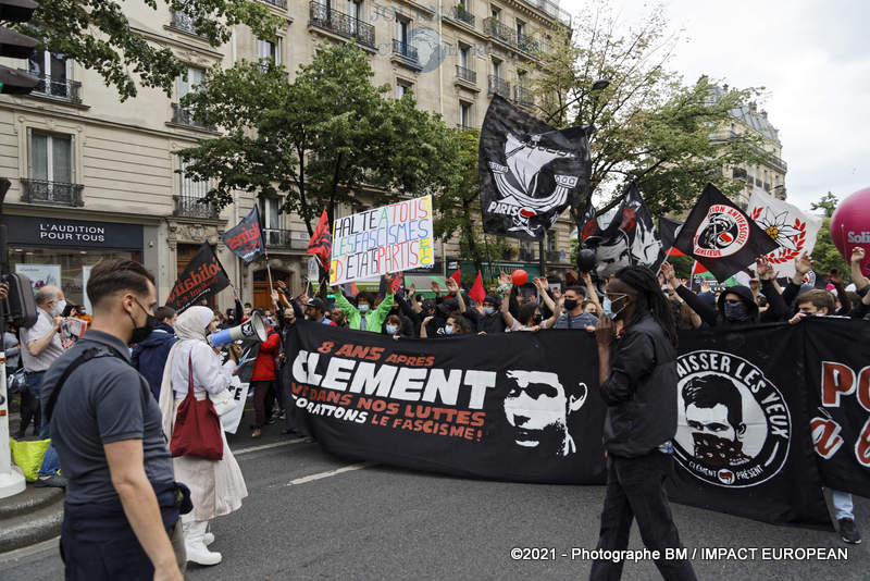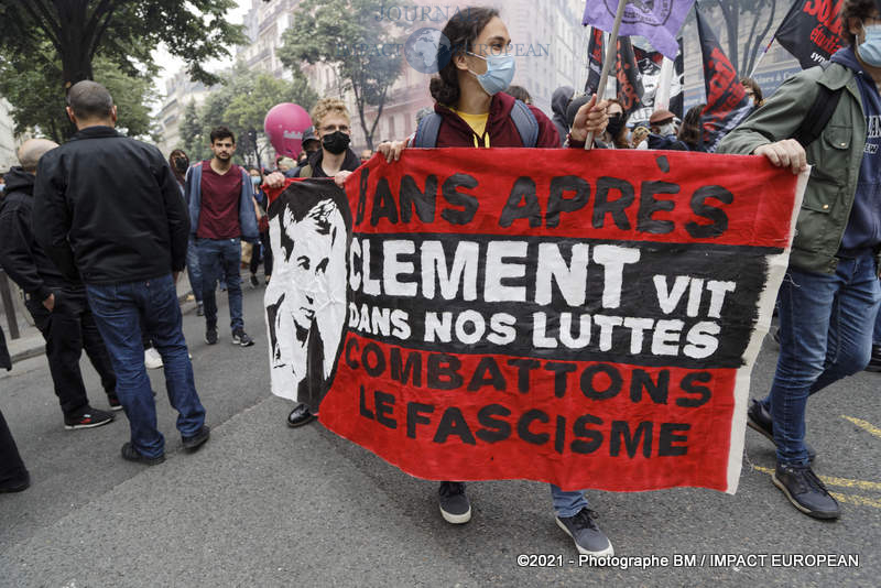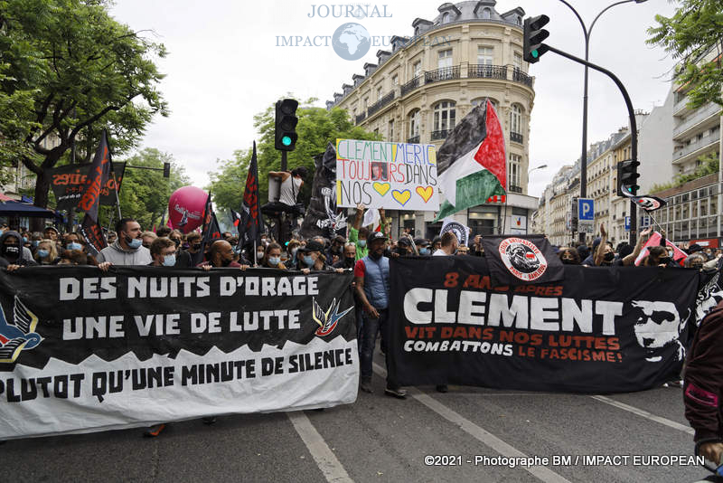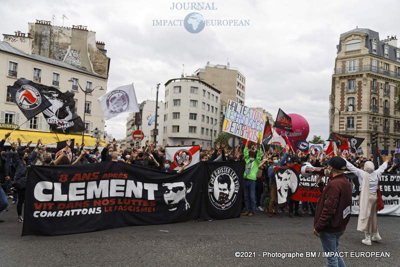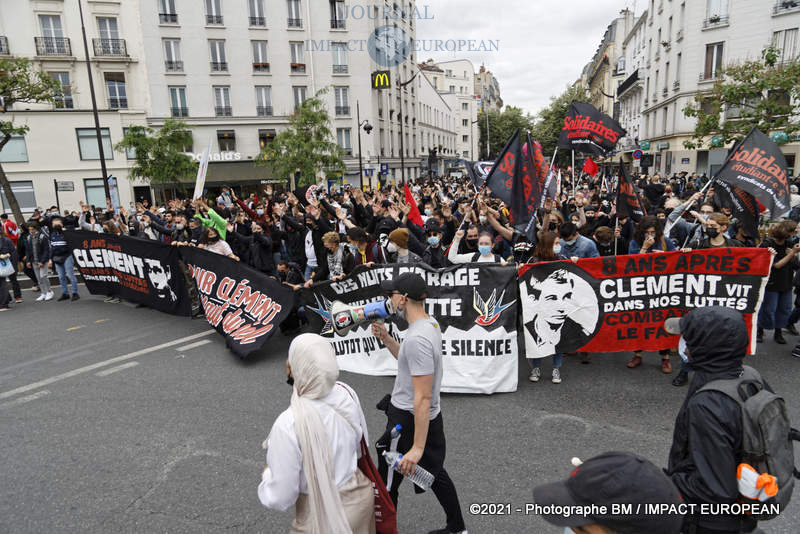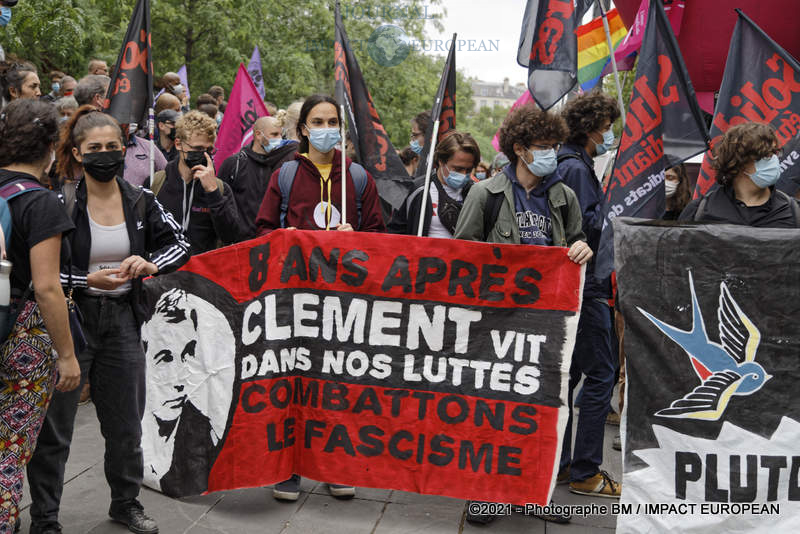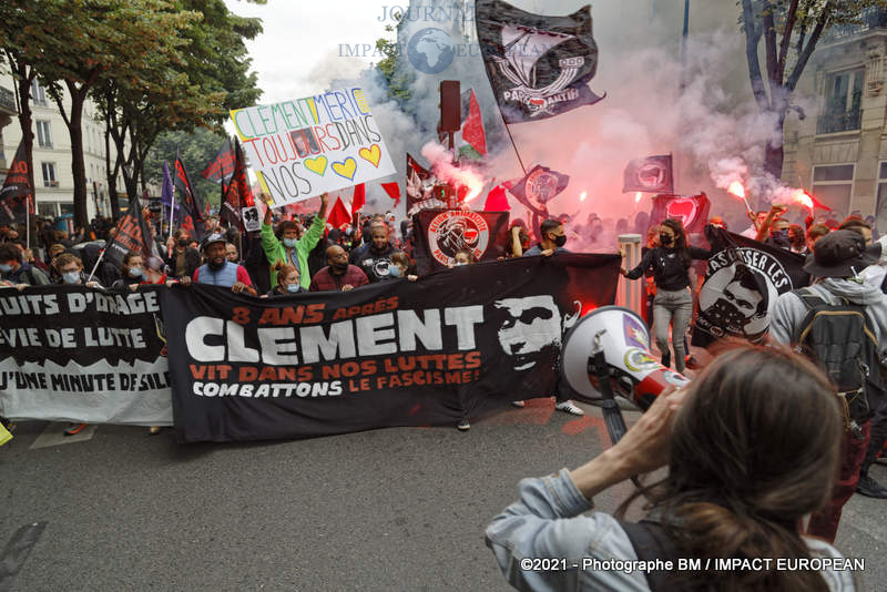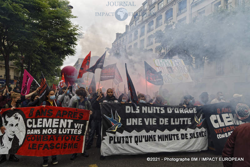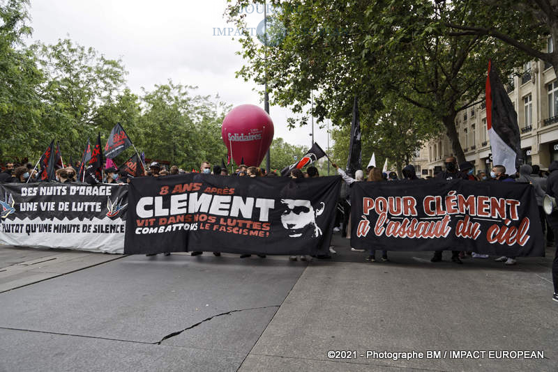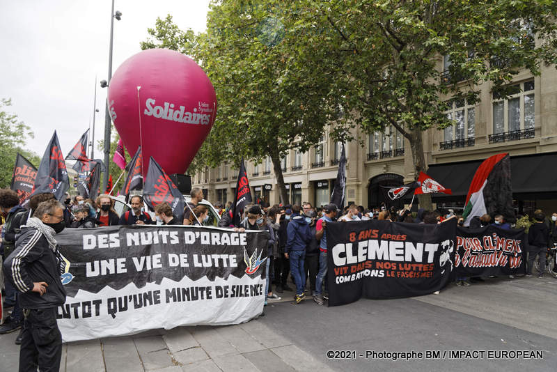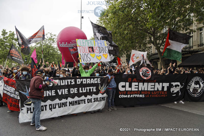 “8 ans après, Clément vit dans nos luttes, combattons le fascisme”, pouvait-on lire sur la banderole de tête du cortège dans lequel figurent des sections antifascistes de Paris, des militants de la CGT Paris, du NPA, de l’Union communiste libertaire (UCL), du syndicat Solidaires, de la Confédération nationale du travail (CNT) ou de l’UNEF.