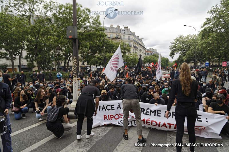 Le cortège s’est élancé peu après 14h de la place de la République en direction de la place Gambetta (XXe). Des gilets jaunes étaient également de la partie pour rendre hommage au jeune homme.