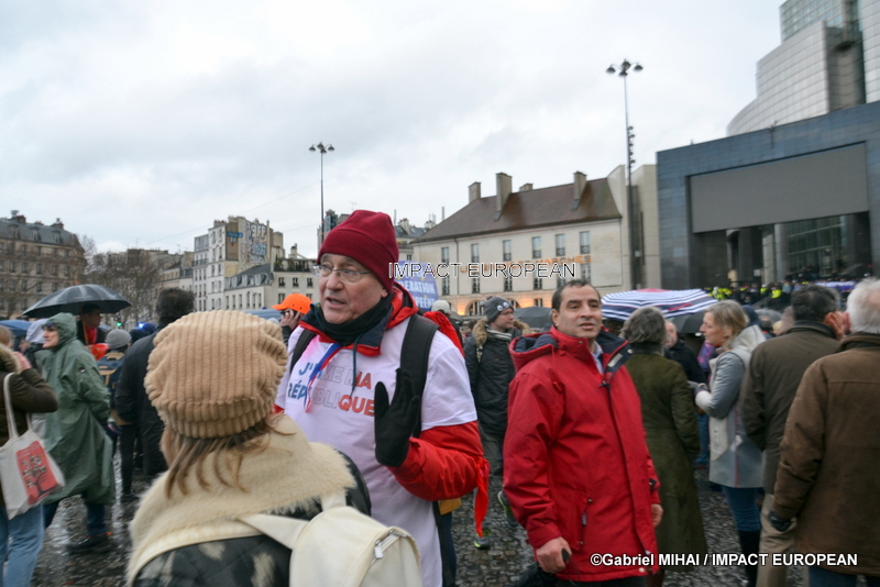 Quelque 10.500 « foulards rouges » selon la préfecture de police de Paris ont défilé dimanche, sous la pluie, de la place de la Nation à Paris pour « défendre la démocratie et les institutions » face aux violences qui ont émaillé la crise des « gilets jaunes ».