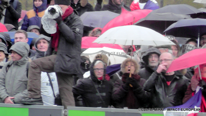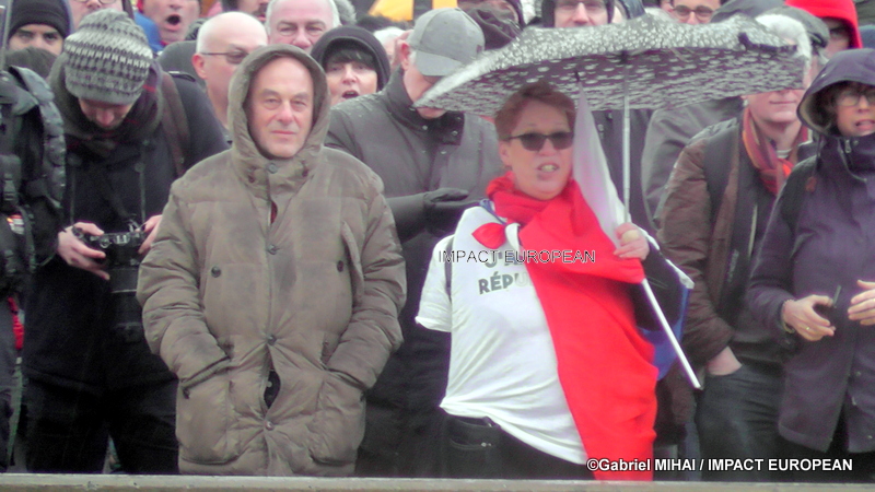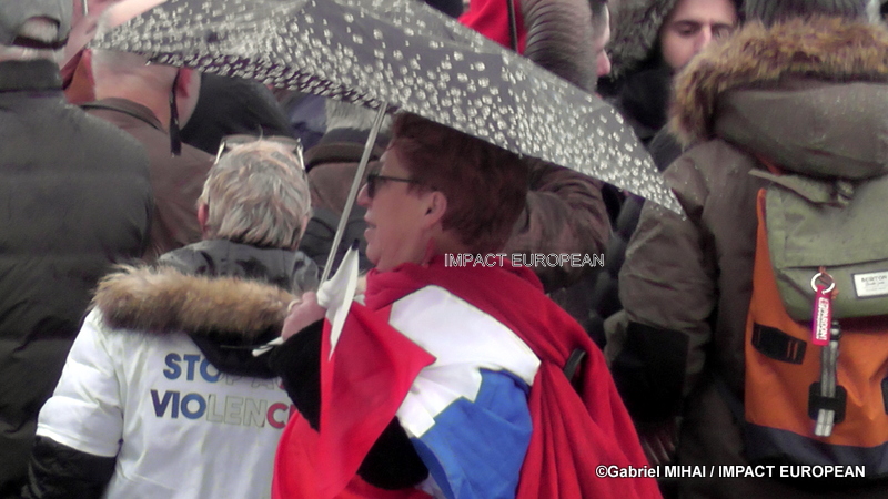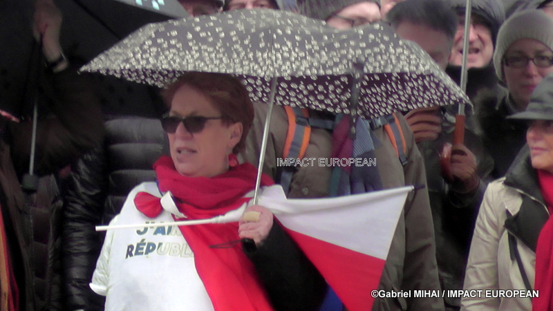 Les manifestants arborent quelques drapeaux français et une poignée de drapeaux européens. Certains portent des tee-shirts sur lesquels est imprimé « J’aime ma république », et « stop aux violences ».