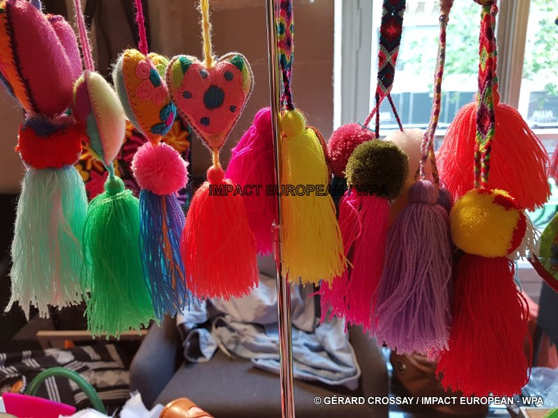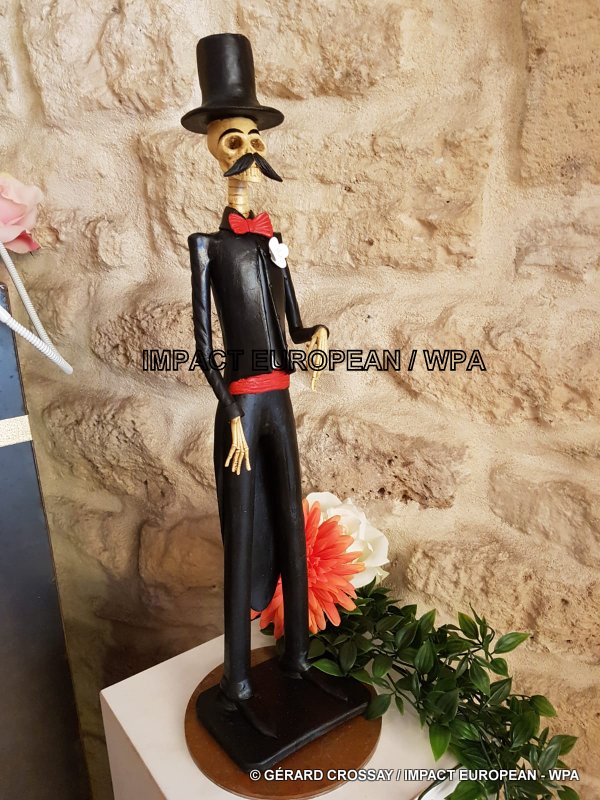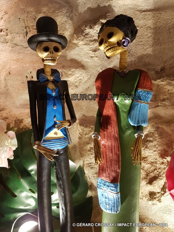 Ce stand « The Glorious Life of Catrinas »présente des « Catrinas » et leurs époux en céramique, figurines de 20 à 30 cm, fabriqués et peintes à la main au Mexique puis importés en Europe, des « Calaveras (crânes peints) , des cierges, des encens, des fleurs, des « Papel Picado »(papier de soie découpé), des bonbons, têtes de mort en sucre et des « Pan de Muertos » ( petites brioches recouvertes de sucre et pains d’épices à la vanille ou à la cannelle, spécialement réalisées pour la Fête des morts) et plein de petits objets de décoration.