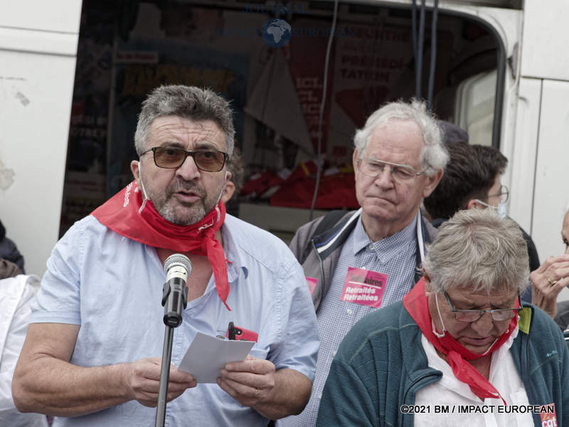 Dans le cortège parisien se trouvaient Philippe Mouë, président de l’UNPR; Eric Coquerel, député LFI; Gilbert Garrel (CGT Cheminot)…