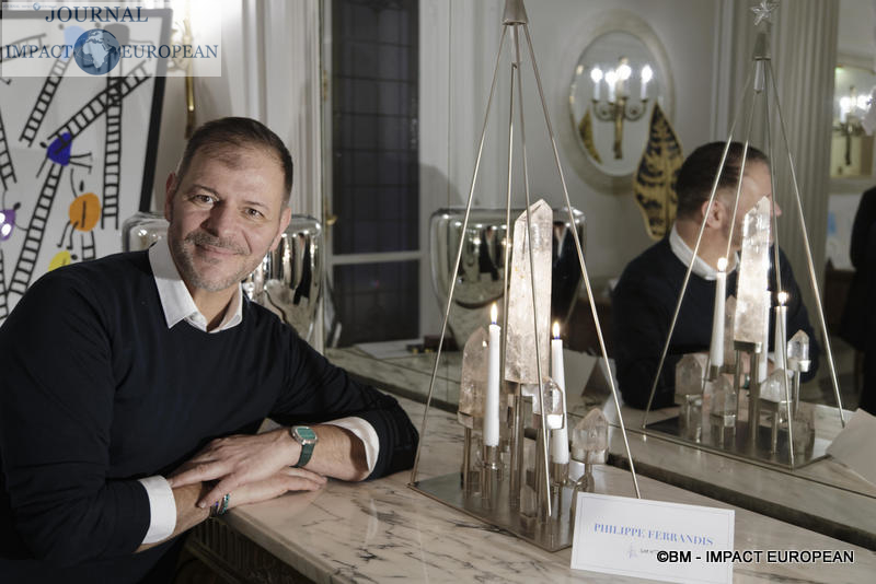 Depuis 30 ans, Philippe Ferrandis réalise des créations mariant bois, cristal de roche, perlesb pierres fines et pâte de verre, sertis sur des métaux ouvragés. Récompensé par le label EPV (Entreprise du Patrimoine Vivant), Philippe Ferrandis compte chez les grands noms de la Haute Cuture comme Givenchy, Oscar de la Renta, Balmain, Scherrer, Nina Ricci, Swarovski ou Crolina Herrera. Avec « Trésorde glace« , il signe une pièce unique, un bougeoir formé de 10 pointes de cristal de roche sur une structure en métal rhodium.