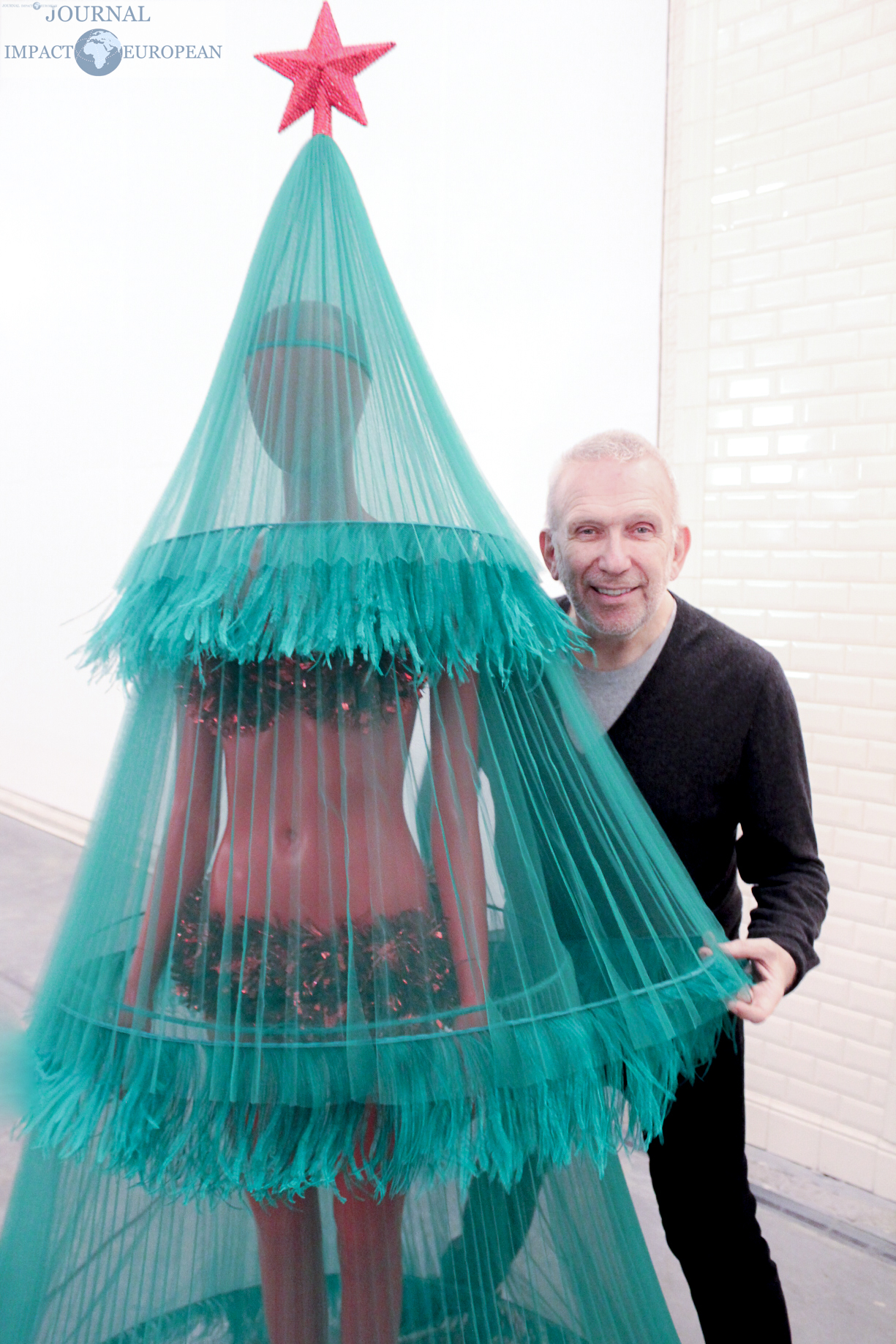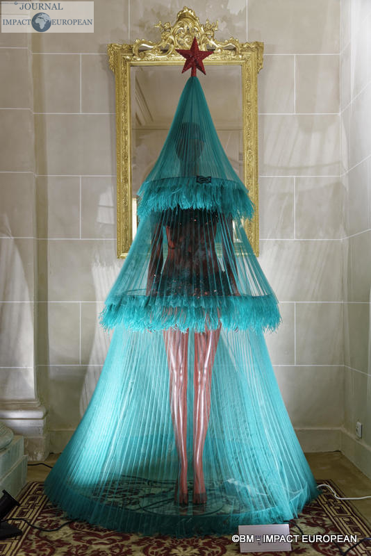 Le sapin de Jean-Paul Gaultier, « Mon beau sapin, Roi des plissés » a été réalisé en référence à la robe de mariée du défilé Haute Couture 2019/2020. Il s’agit d’une robe sapin en tulle vert de 2 mètres de haut sur 1,20 mètres de large, pesant 30 kg, posée sur un mannequin laqué rouge. Une représentation qui arrive avant le défilé Haute Couture Printemps Eté 2020 qui célébrera les 50 ans de Jean-Paul Gaultier dans la mode, en janvier prochain.